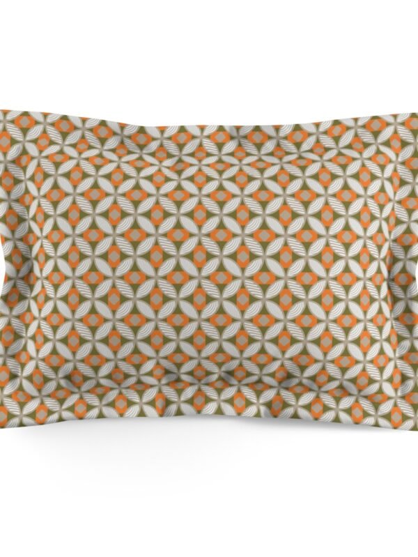 Retro Art Deco Olive Green Orange Tones Pillow Shams