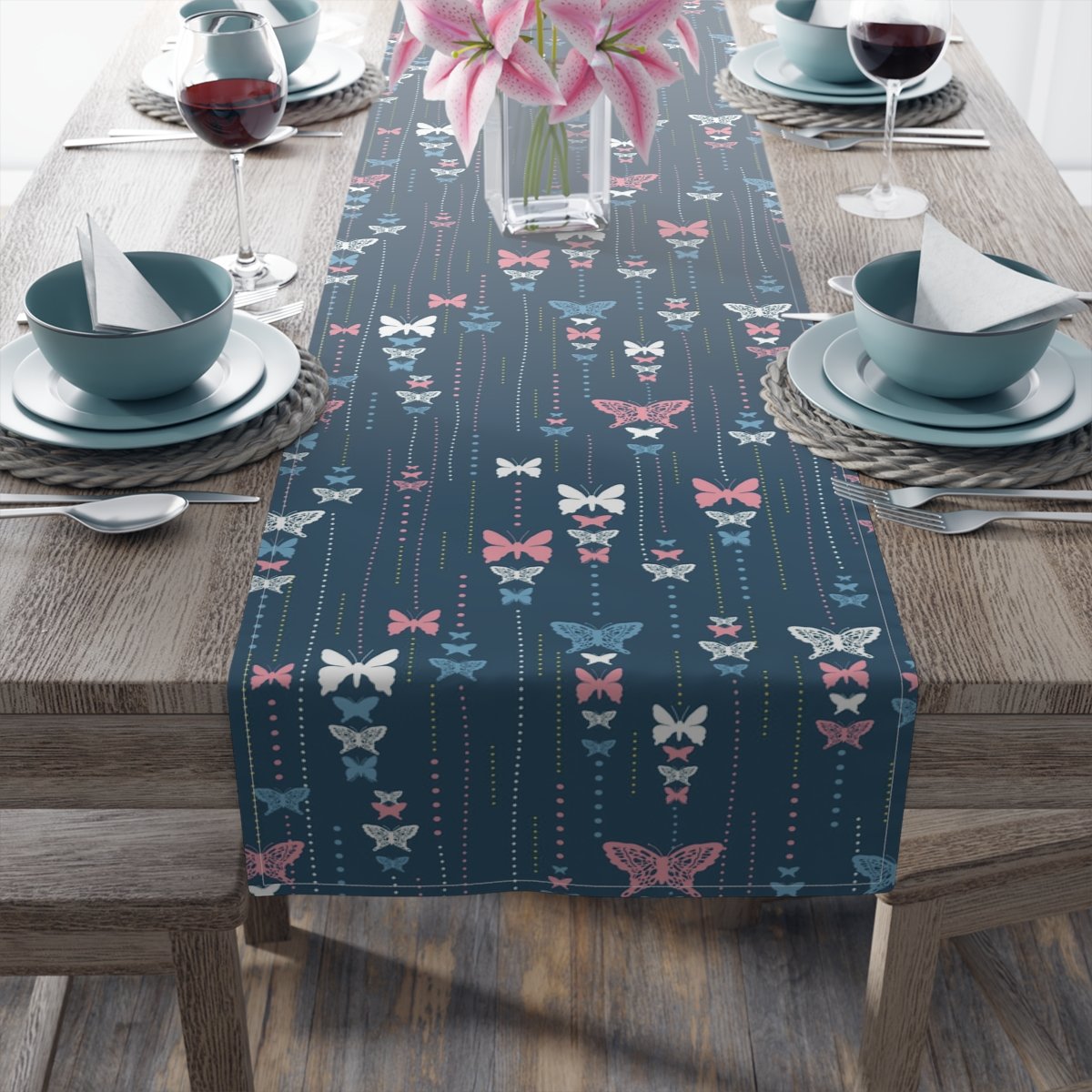 Abstract Dot and Butterfly Print on Dark Teal Table Runners for Glass Table