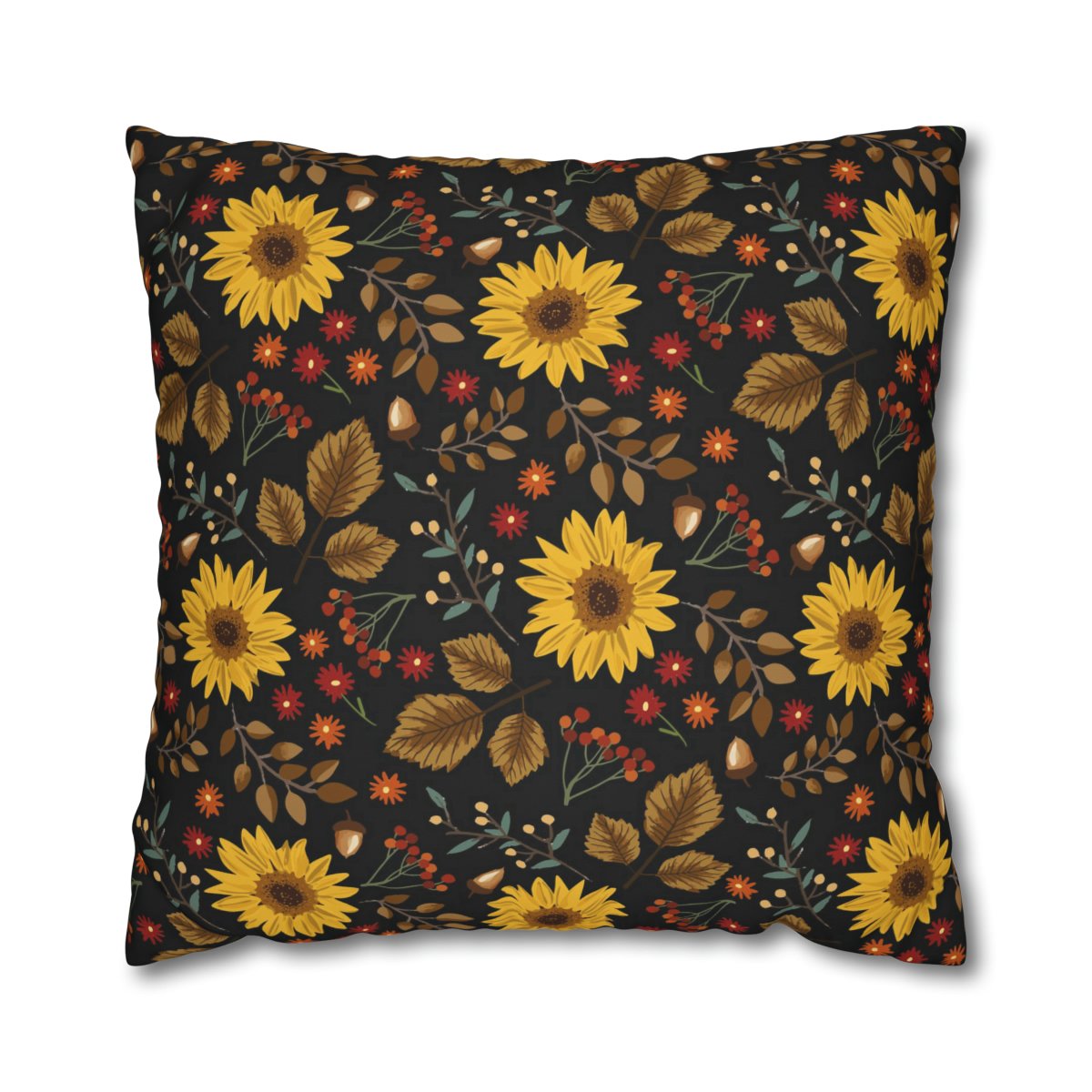 Embrace the beauty of nature with the Autumn Sunflowers on Black Euro Pillow Covers.  The floral seamless pattern and cheerful yellow sunflowers will bring joy and a touch of sunshine to your home. Transform your space into a tranquil oasis with these fashionable and comfortable pillow covers, creating a warm and inviting atmosphere for you and your guests to enjoy.