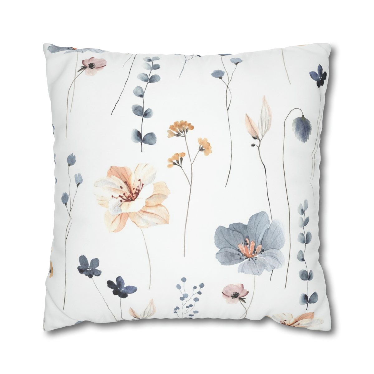 Introducing ou Blue Beige Flowers on White Euro Shams- a contemporary twist on a classic and timeless design. The watercolor floral pattern adds a touch of modernity and sophistication to any space, making these shams a standout accent piece.