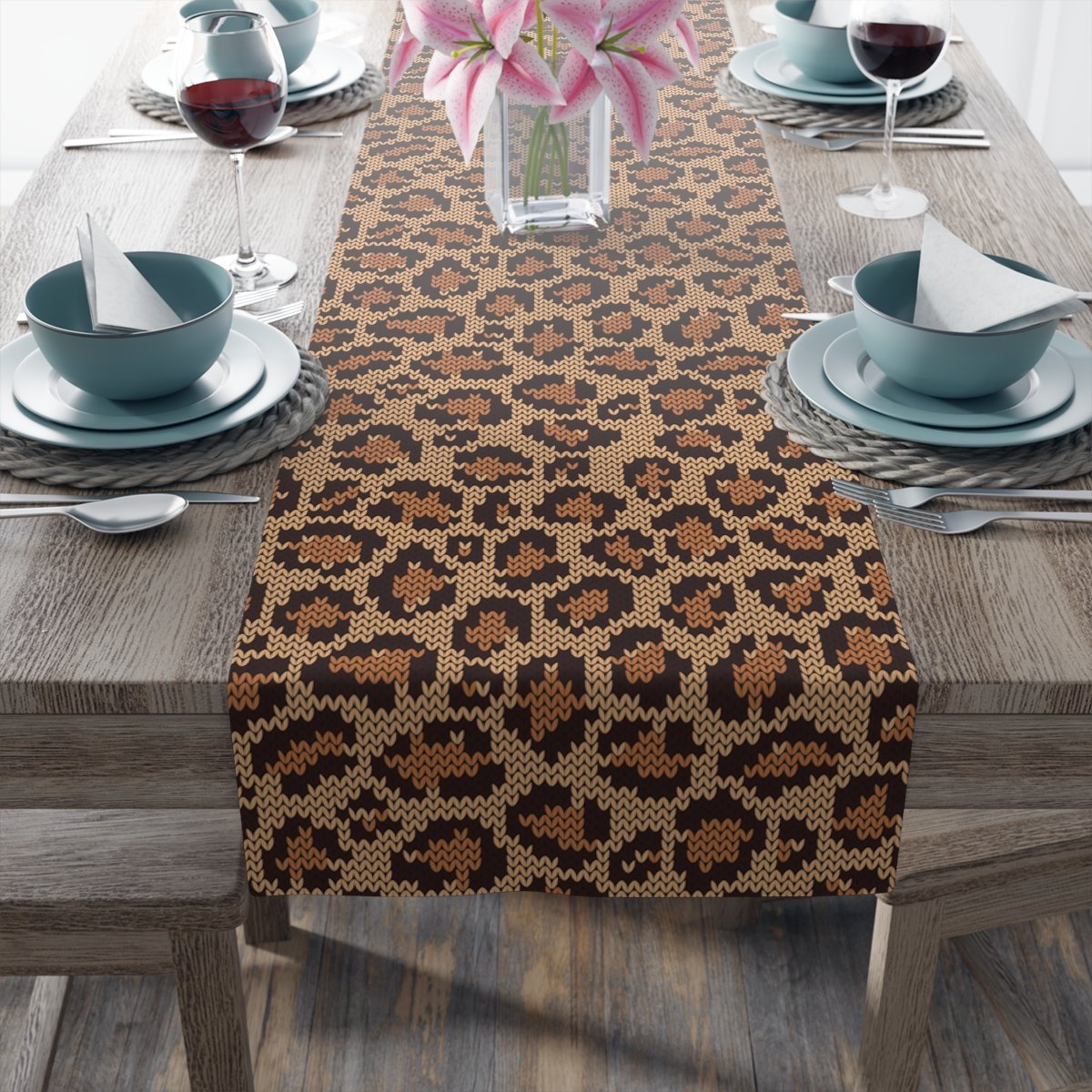 Brown Leopard Jacquard Knitted Pattern Table Runners
