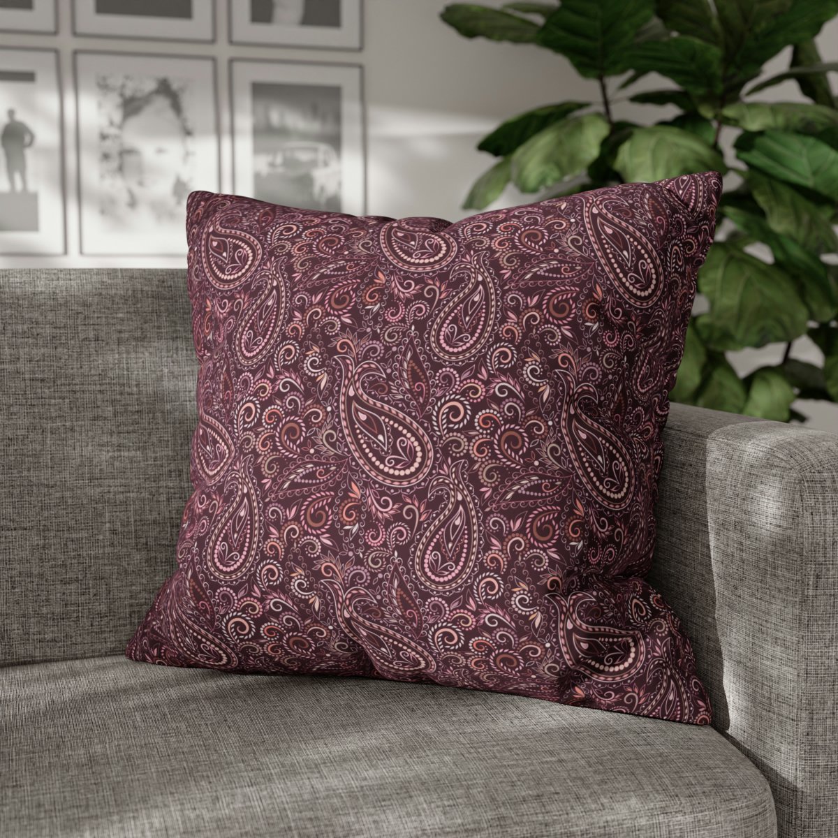 Decorate your bedroom, living room or couch with our decorative Burgundy Paisley Flowers Euro Pillow Shams. Designed in a Seamless on burgundy background from an embroidered paisley pattern with a stylized curved twig with flowers, leaves and buds.