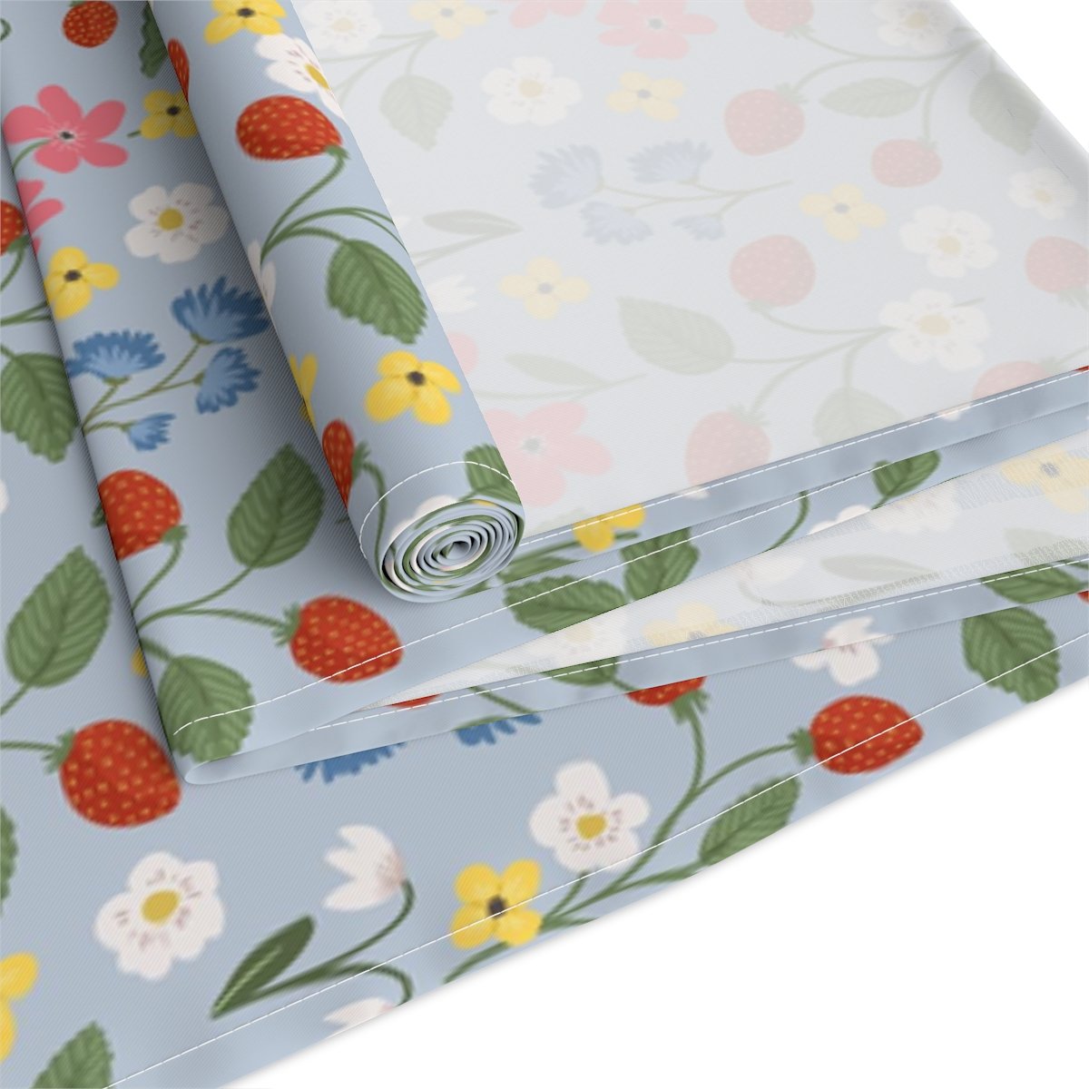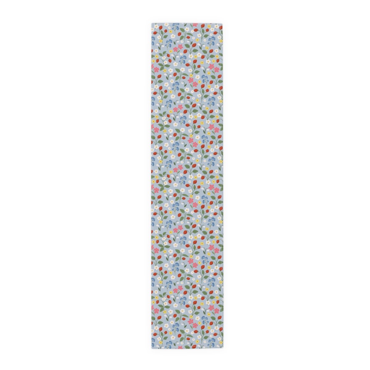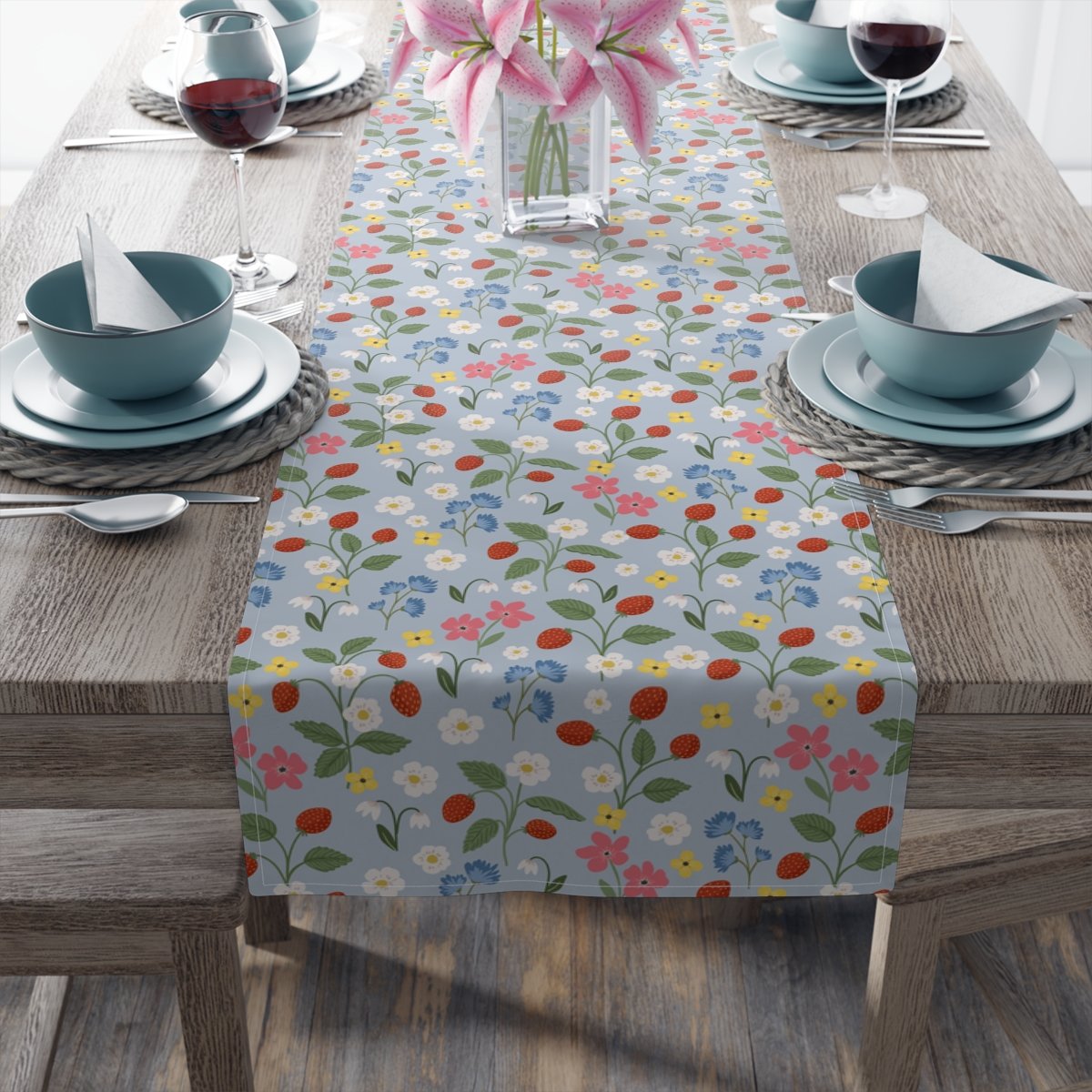 Colorful Meadow Flower Print on Light Blue Table Runners