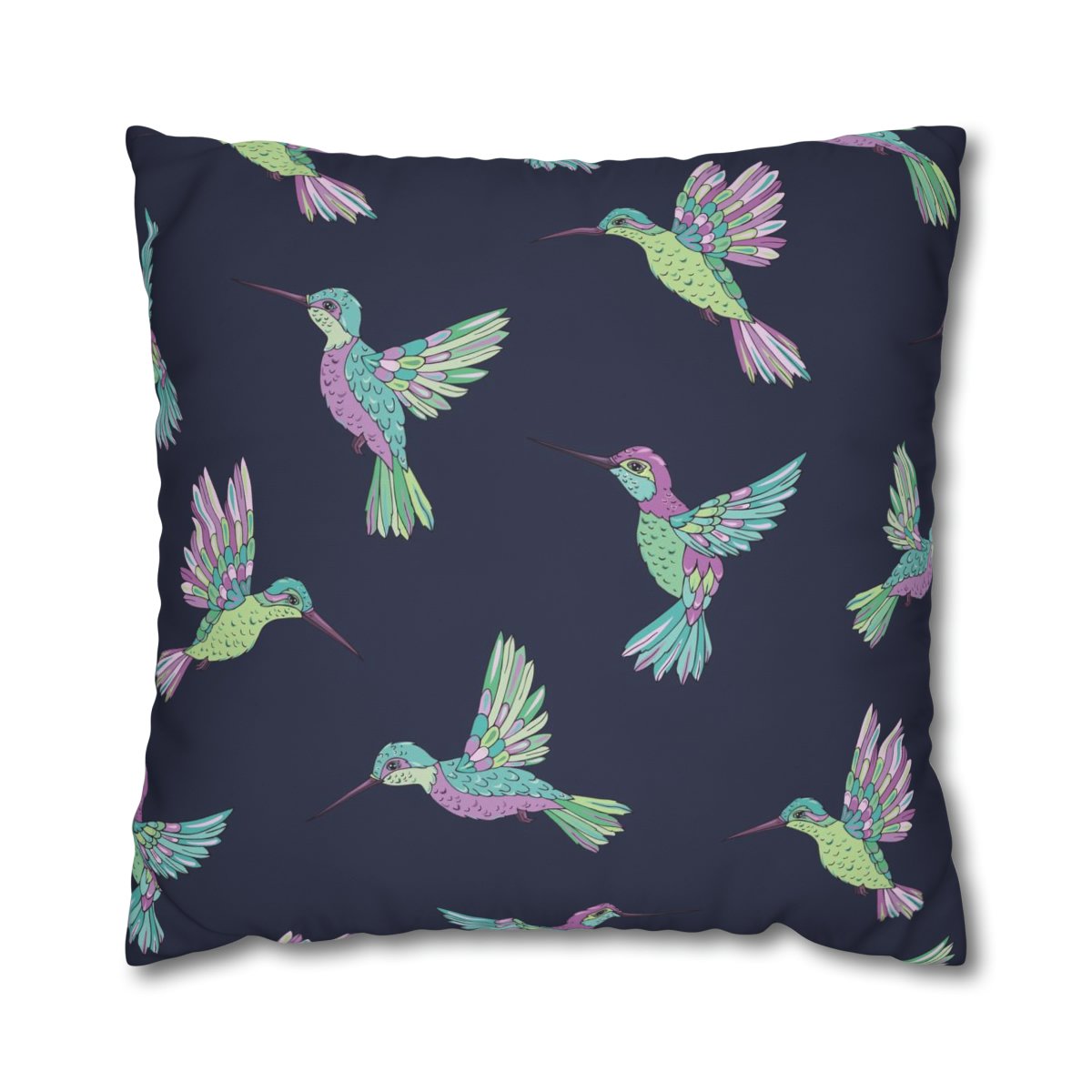 Introducing our Dark Blue Hummingbird Euro Pillow Shams- a delightful and whimsical addition to your home decor. These pillow covers feature a charming design of vibrant and playful birds on a dark blue background, adding a pop of color and character to any space.