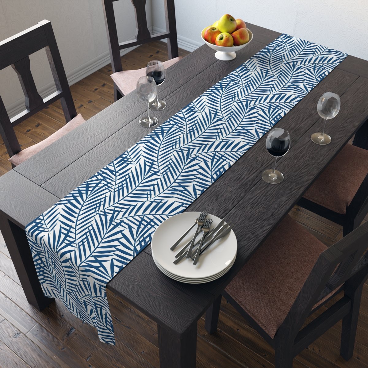 Introduce the essence of tropical paradise to your dining area with our Decorative Tropical Blue Palm Tree Leaves Table Runner. This stunning table runner showcases a vibrant and exotic palm tree leaves design in a captivating shade of blue. Made from high-quality materials, it ensures both durability and style, making it a perfect addition to your table setting. Whether you have a 4-seater or 6-seater dining table, our versatile Printed Tropical Blue Palm Tree Leaves Table Runner will effortlessly add a touch of beach-inspired charm to any meal or gathering. Embrace the beauty of the tropics and elevate the ambiance of your dining decor with this delightful table runner.
