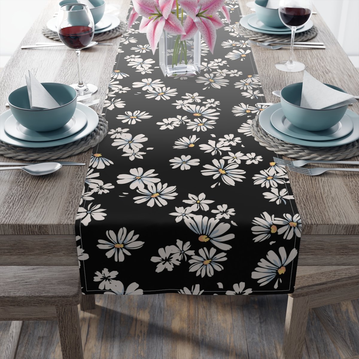 Enhance your dining experience with our Delicate Daisy Print Table Runners in Black n White. Made from high-quality materials, these vibrant runners feature a floral pattern that adds a touch of elegance to any table setting. Whether hosting a dinner party or simply enhancing your everyday decor, these table runners are the perfect addition. Elevate your style and create a captivating ambiance with our Printed Delicate Daisy Print Table Runners in Black n White Color.