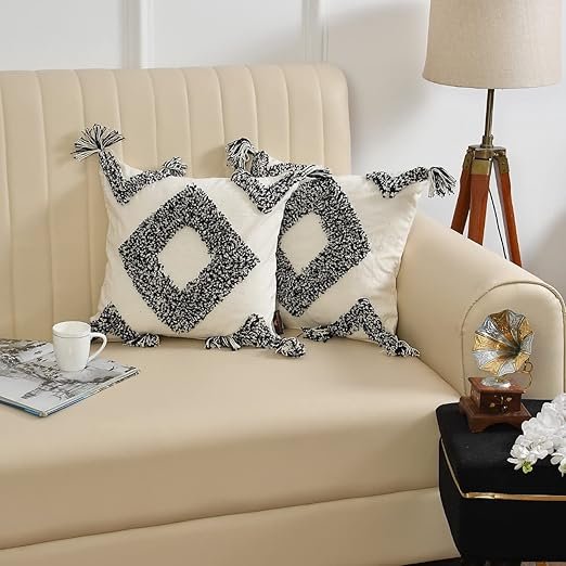 Introducing a Handmade Fancy Black Diamond Tufted Zipper Pillow Covers, exquisitely designed to bring a touch of bohemian elegance to your living space. These 16×16 inch decorative cushion covers are crafted from high-quality cotton, offering both comfort and durability. Embrace the free-spirited essence of boho design as these intricately crafted covers adorn your couch or sofa, adding a vibrant and eclectic aesthetic to your living room. Elevate your home decor with the unique and artistic flair of these Bohemian-inspired pillow covers, designed to effortlessly complement any boho-chic or eclectic interior style. Perfect for Couch, Sofa, and Home Decor.