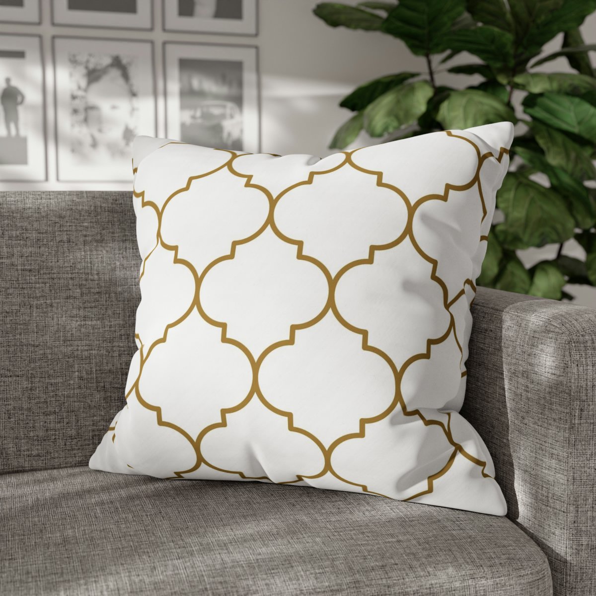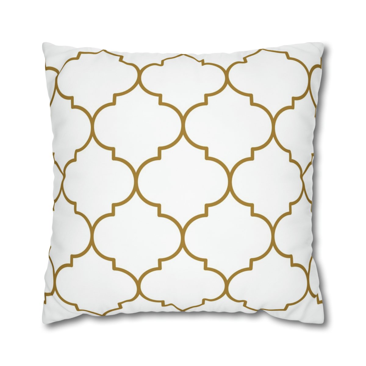 In summary, the Gold Quatrefoil Moroccan Pattern on White Euro Pillow Shams are a must-have for anyone seeking a blend of elegance and style in their home decor. With their gold & white color, intricate Quatrefoil Moroccan pattern with gold line pattern, double-sided print, 100% polyester canvas material, and concealed zipper, these pillow covers offer both visual appeal and practicality. Elevate the look of your pillows and create an atmosphere of sophistication with these exquisite euro bed pillow covers.