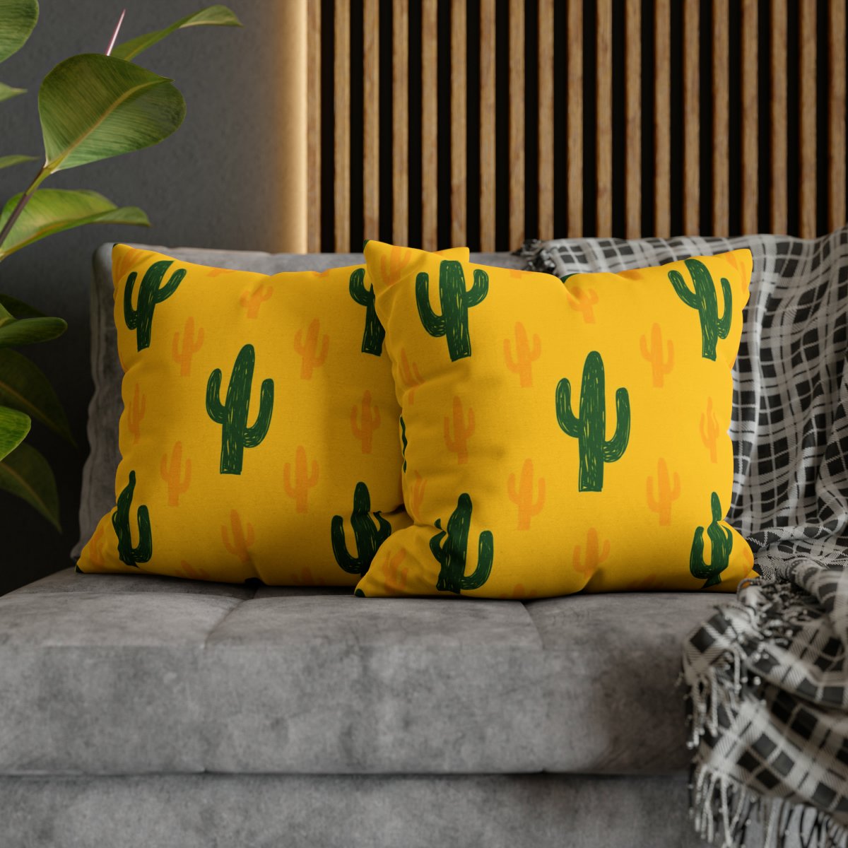 Green Cactus Print on Yellow Sofa Throw Pillow Covers