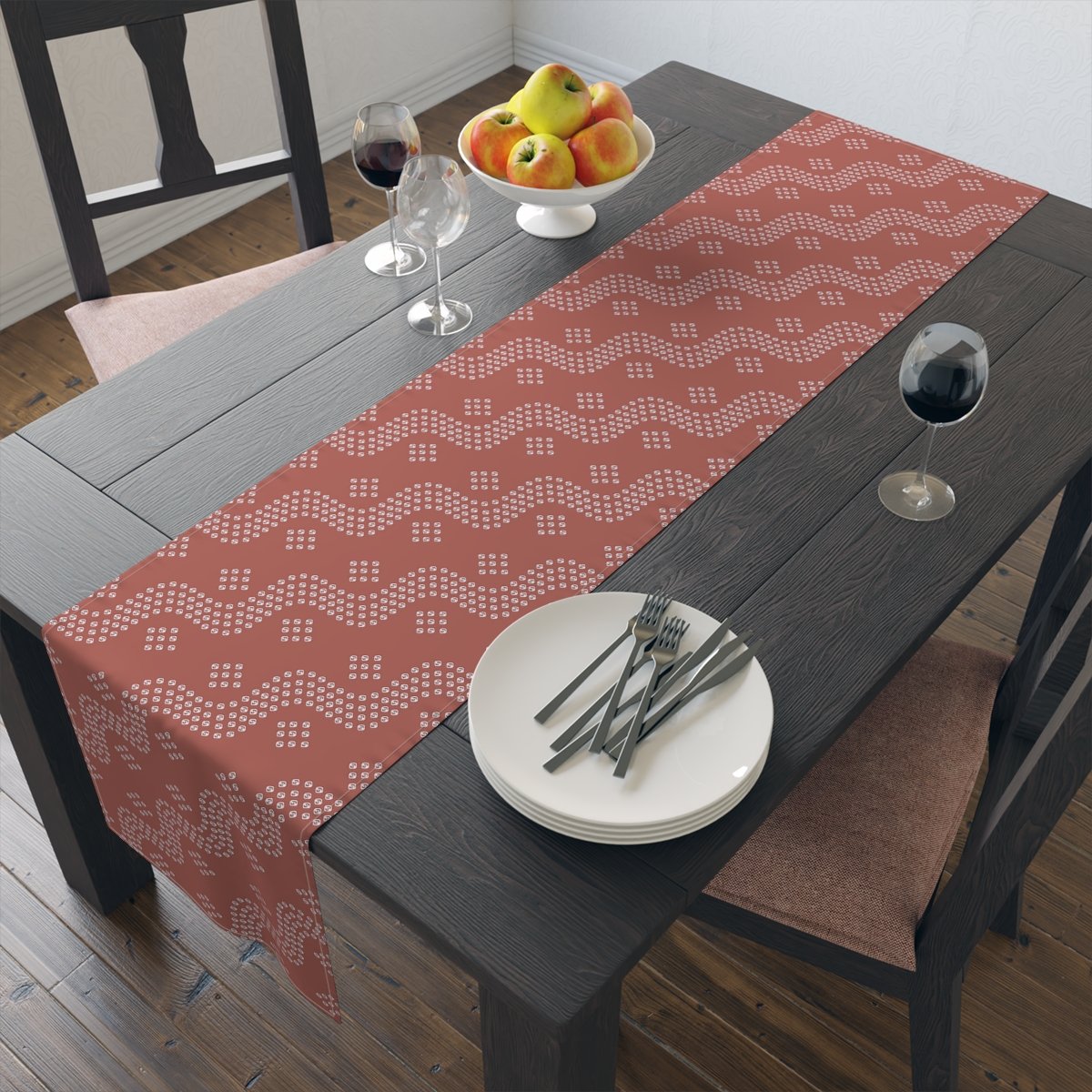 Hemmed edges: The runner is sewn around the edges, making it durable and long-lasting