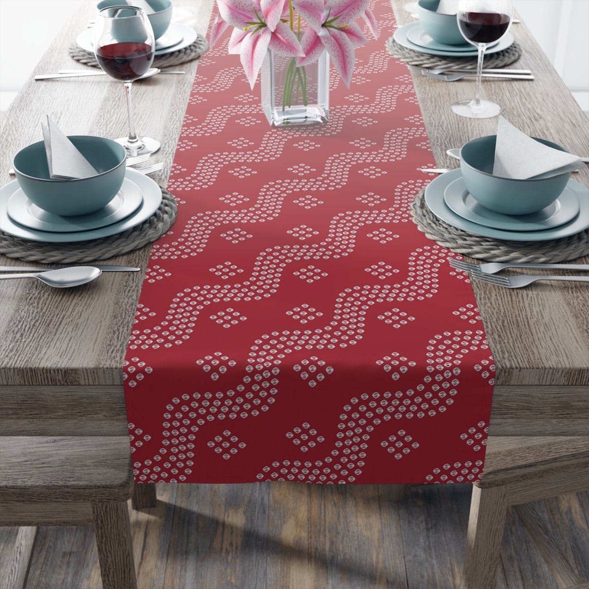 Enhance your dining experience with our Gujrati Bandanna Pattern on Red Dining Table Runners. Made from high-quality materials, these vibrant runners feature a bandanna pattern that adds a touch of elegance to any table setting. Whether hosting a dinner party or simply enhancing your everyday decor, these printed table runners are the perfect addition. Elevate your style and create a captivating ambiance with our Gujrati Bandanna Pattern on Red Dining Table Runners, Its perfect for 4 and 6 Seater Dining Table.