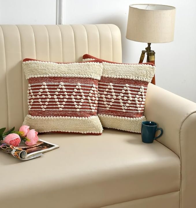Hand Woven Diamond Design Rust Cushion Covers 16 x 16(Cover Only)