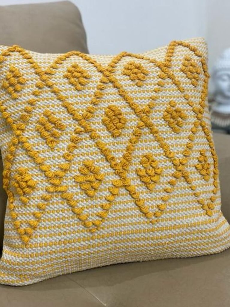 Introducing a Hand Woven Yellow Boho Geometric Pillow Covers 16×16 exquisitely designed to bring a touch of bohemian elegance to your living space. These 16×16 inch inch decorative woven square cushion covers are crafted from high-quality cotton, offering both comfort and durability. Embrace the free-spirited essence of boho design as these intricately crafted covers adorn your couch or sofa, adding a vibrant and eclectic aesthetic to your living room. Elevate your home decor with the unique and artistic flair of these Bohemian-inspired pillow covers, designed to effortlessly complement any boho-chic or eclectic interior style. Perfect for Couch, Sofa, and Home Decor, living room, bedroom.