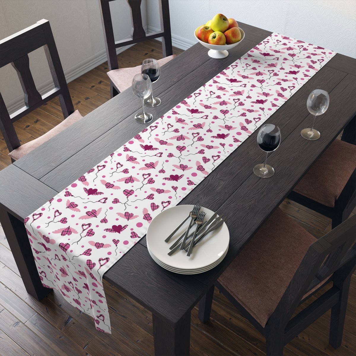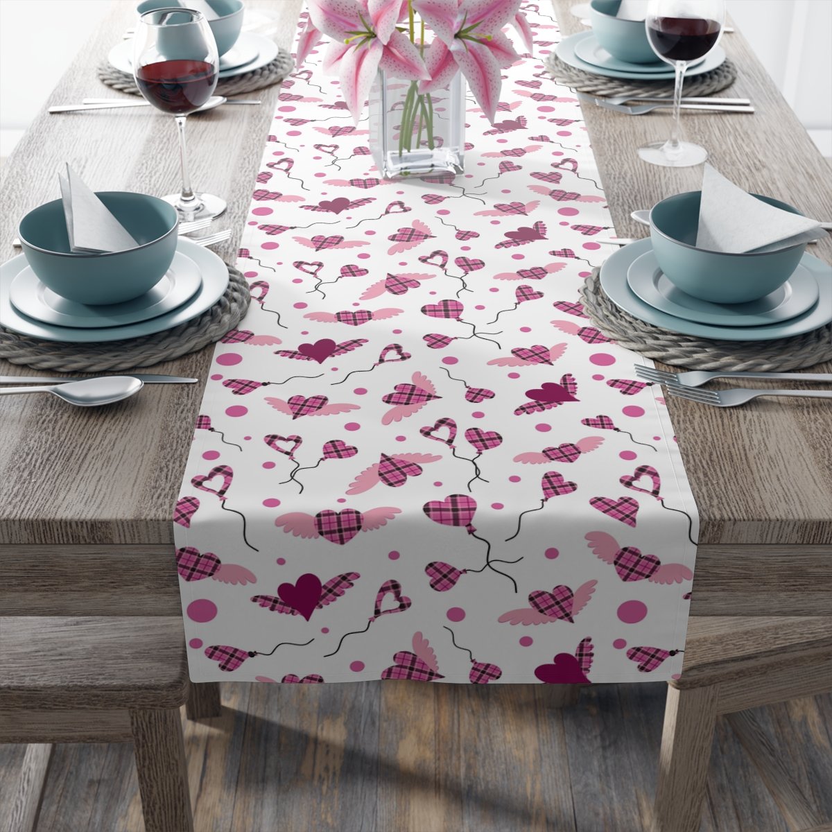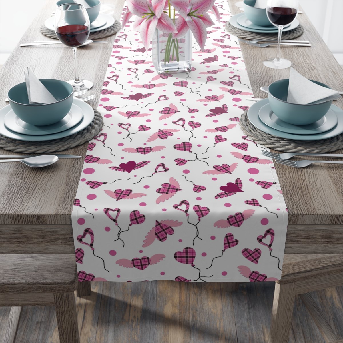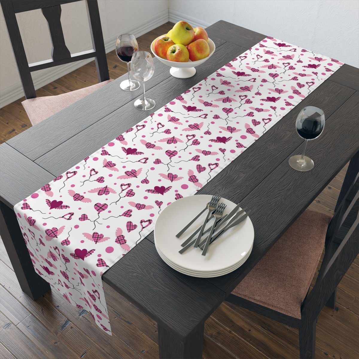 Heart Shaped Pink Buffalo Plaid Dining Table Runners