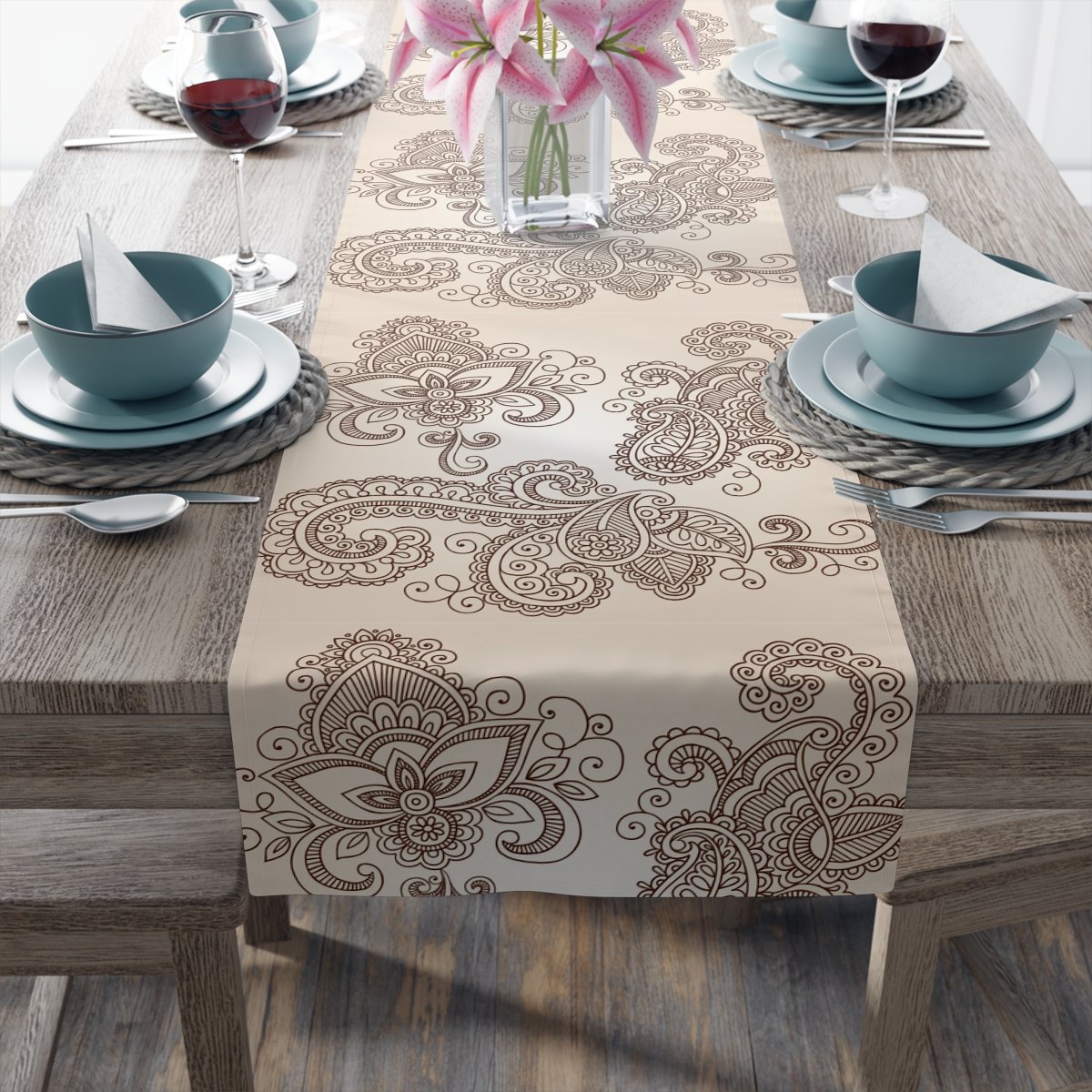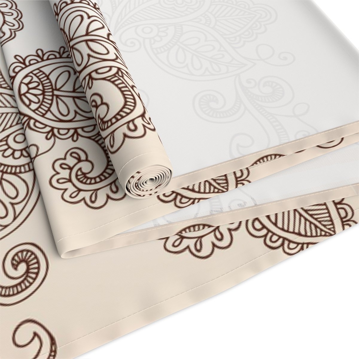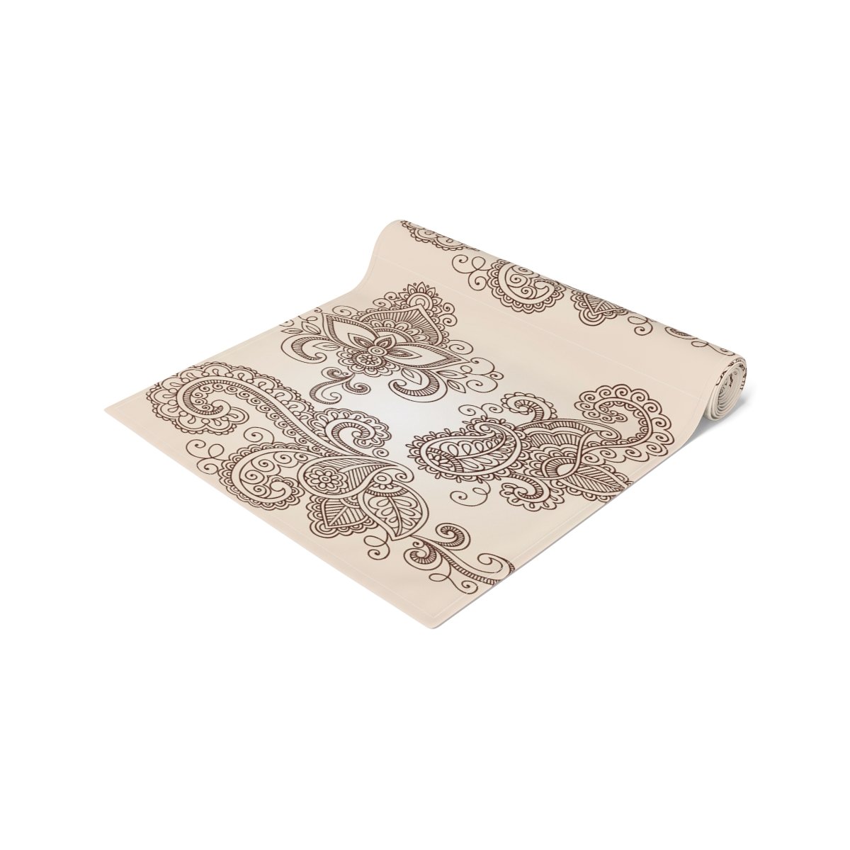 Hand-Drawn Henna Mehndi Floral Paisley Beige & Brown Table Runners