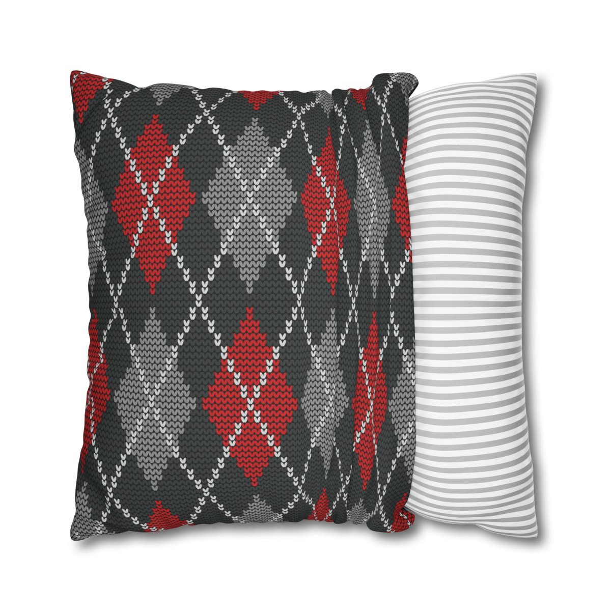 Knitted Argyle Print in Gray & Red Color Euro Bed Pillow Covers