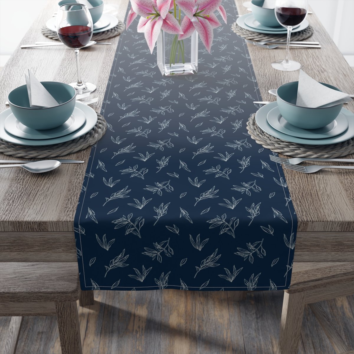 Enhance your dining experience with our Modern Blue Leaf Print Dining Table Runners for glass table. Made from high-quality materials, these vibrant runners feature a floral pattern that adds a touch of elegance to any table setting. Whether hosting a dinner party or simply enhancing your everyday decor, these table runners are the perfect addition. Elevate your style and create a captivating ambiance with our Modern Blue Leaf Print Dining Table Runners.