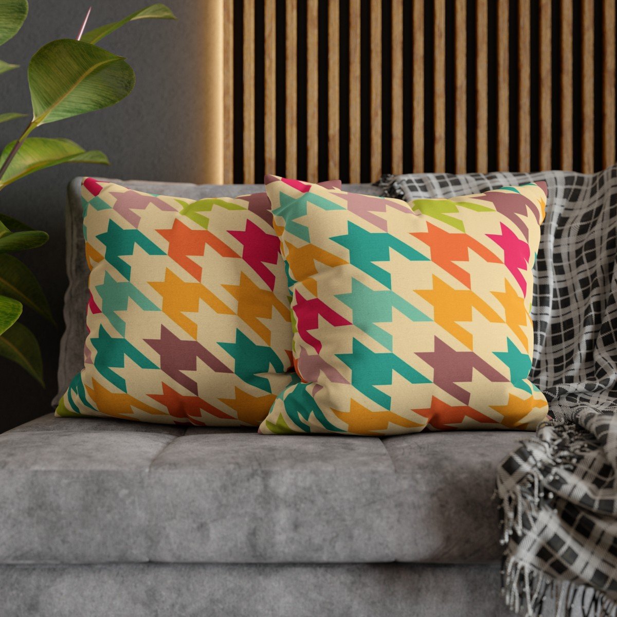 Upgrade your home décor with our Multicolor Houndstooth Throw Sofa Pillow Covers, and transform your sofa into a luxurious and inviting centerpiece. Experience the perfect blend of style and comfort with these eye-catching and functional accessories.