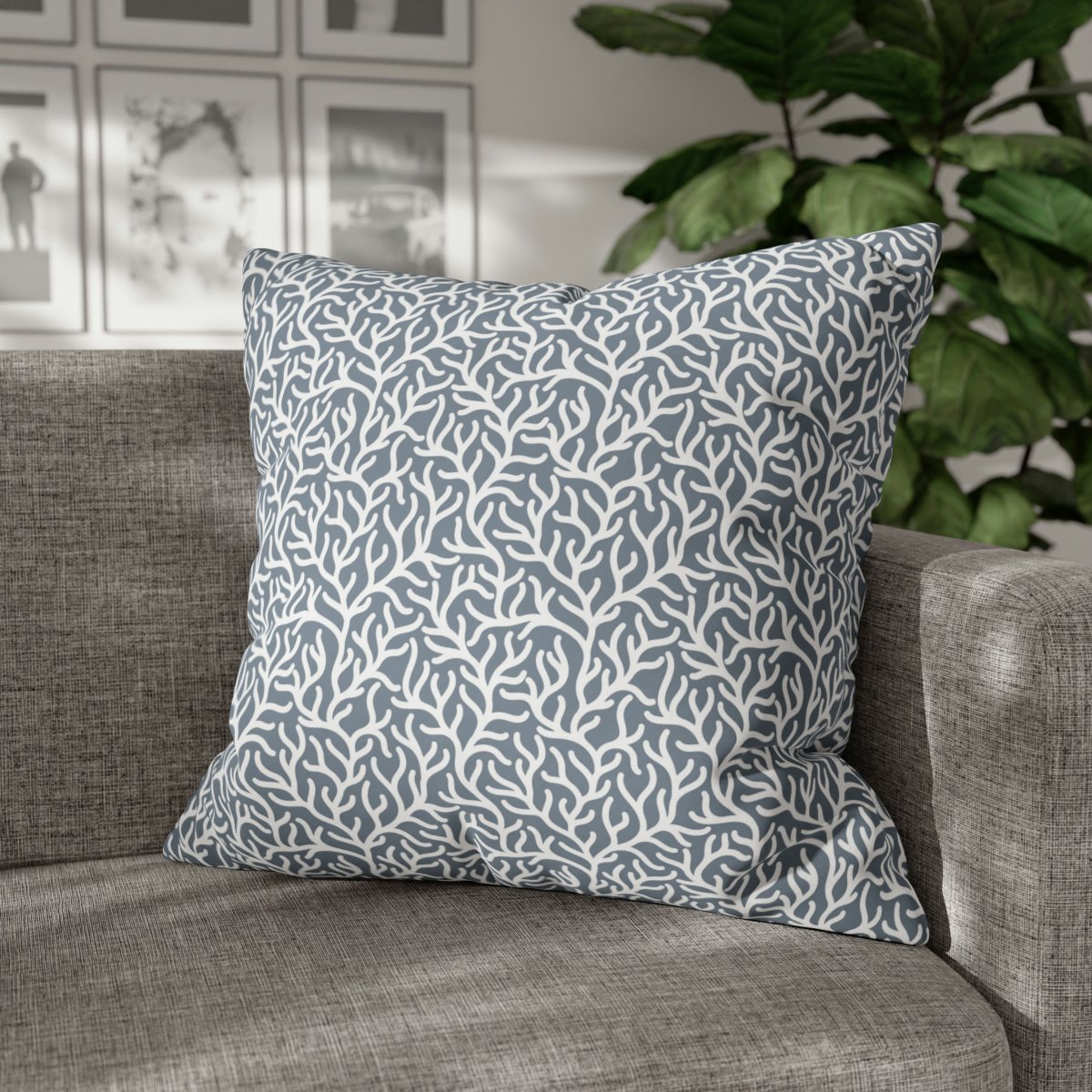 Introducing our Modern Ocean Grey Coral Reef Print on White Euro Pillow Shams. These stunning pillow covers are designed to add a contemporary touch to your living space.