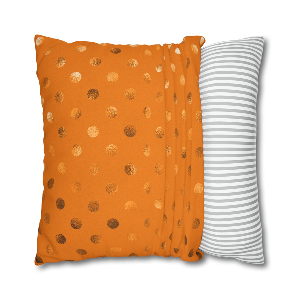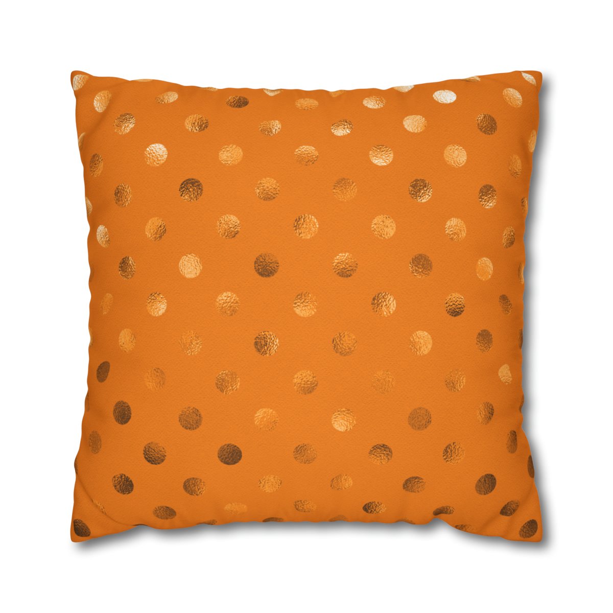 In summary, the Orange Metallic Foil Polka Dot Spun Euro Shams Pillow Covers are a must-have for anyone looking to incorporate a modern and stylish element into their home decor. With their orange color, charming polka dot pattern, double-sided print, 100% polyester canvas material, and concealed zipper, these shams offer both visual appeal and functionality. Enhance your pillows and give your space a fresh and trendy look with these contemporary bed pillow shams.