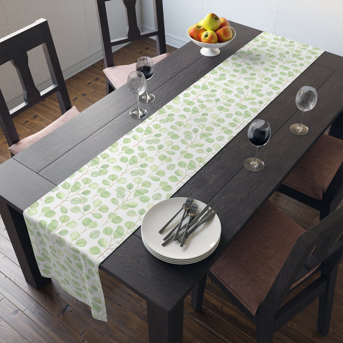 Enhance your dining experience with our Printed Green Eucalyptus Table Runners. Made from high-quality materials, these vibrant runners feature a beautiful green eucalyptus print that adds a touch of elegance to any table setting. Whether hosting a dinner party or simply enhancing your everyday decor, these table runners are the perfect addition. Elevate your style and create a captivating ambiance with our Printed Green Eucalyptus Table Runners