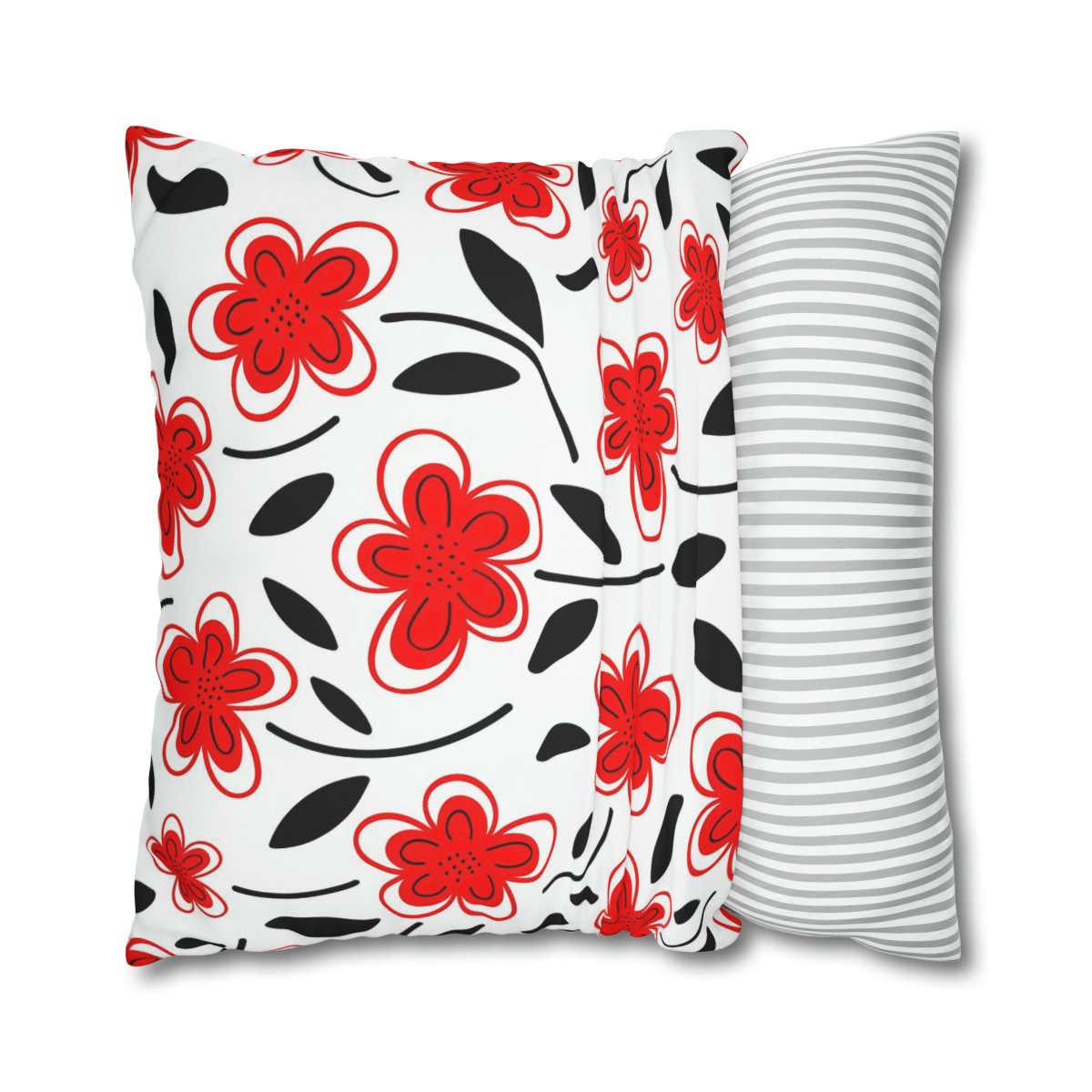 The intricate details and lifelike rendering of the red flowers make these pillow shams a stunning addition to any room. The vibrant shades of red and white create a captivating contrast against a soft, neutral background, evoking the freshness and joy of the spring season.