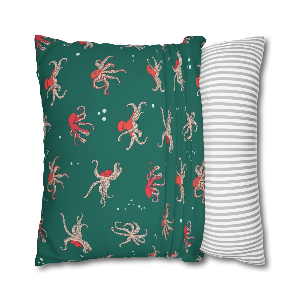 Overall, Red Octopuses on Dark Green Euro Shams are a must-have for anyone who wants to add a fun and playful touch to their home decor. With their bold green color, whimsical octopus pattern, double-sided print, 100% polyester canvas material, and concealed zipper, these shams offer both aesthetic appeal and functionality. Transform your pillows and give your space a fresh new look with these delightful pillow shams.