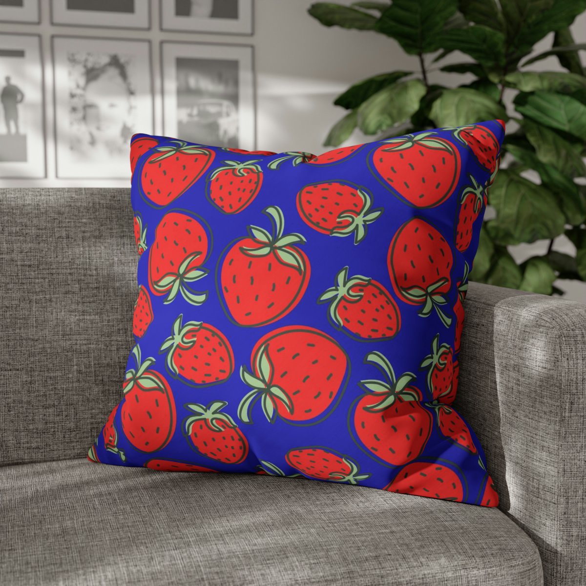 Give your home a fierce and fashionable touch with these Red Strawberry on Blue Euro Pillow Shams, bringing a hint of untamed excitement and timeless charm to any room. Get ready to make a bold