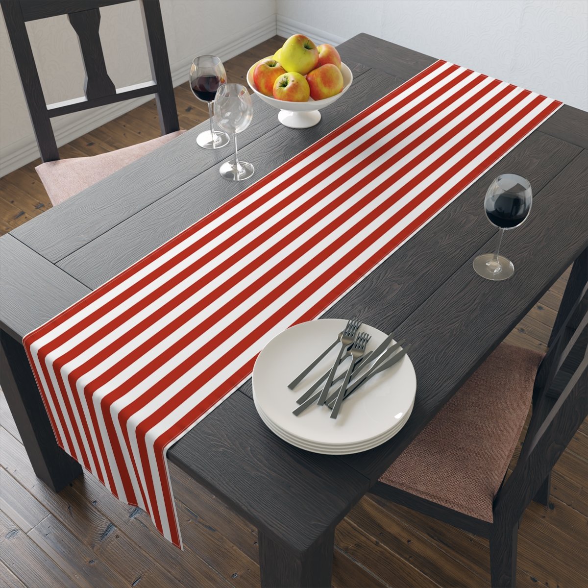 Retro Dark Red and White Striped Dining Table Runners