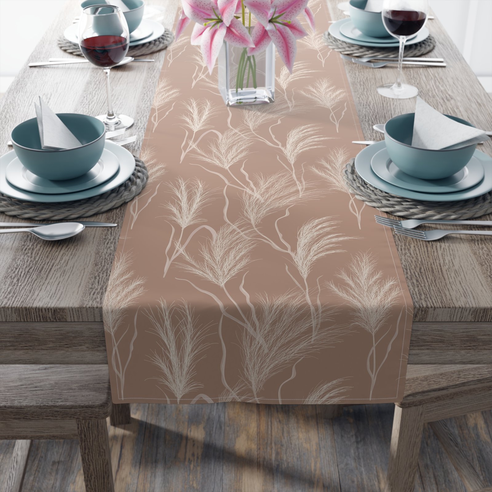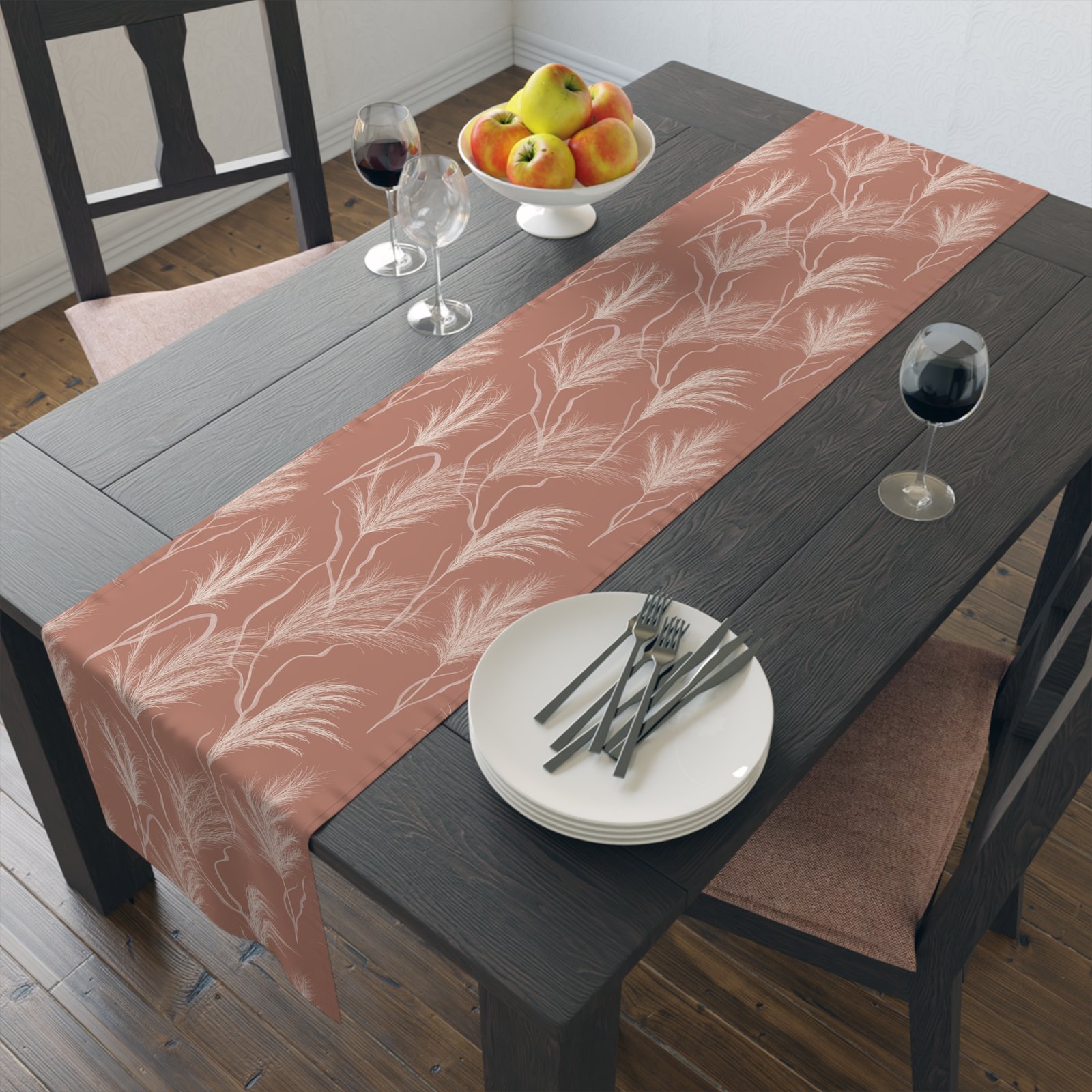Print: One sided print table runners can be put to versatile use including in homes, hotels, kitchens, or use as bed runners for decorative purposes. These runners not only enhance the overall aesthetic of your table décor but also protect it. Designed to be easy to maintain, they are convenient for hassle-free cleaning and upkeep. With the printed fall table runners, you can effortlessly elevate the look and feel of your space, giving it a touch of elegance while ensuring protection.