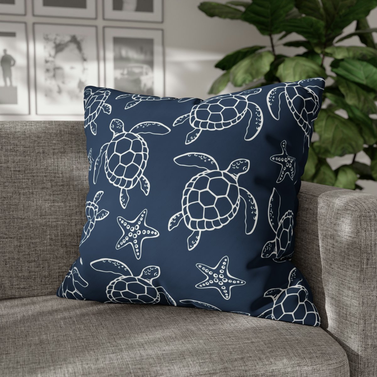 The Modern Sea Turtle on Blue Euro Pillow Shams are a stylish and modern choice for adding a pop of color to any bedroom , living room, farmhouse decor. With their blue color hue and turle pattern, these pillow shams will instantly elevate the look of your space.