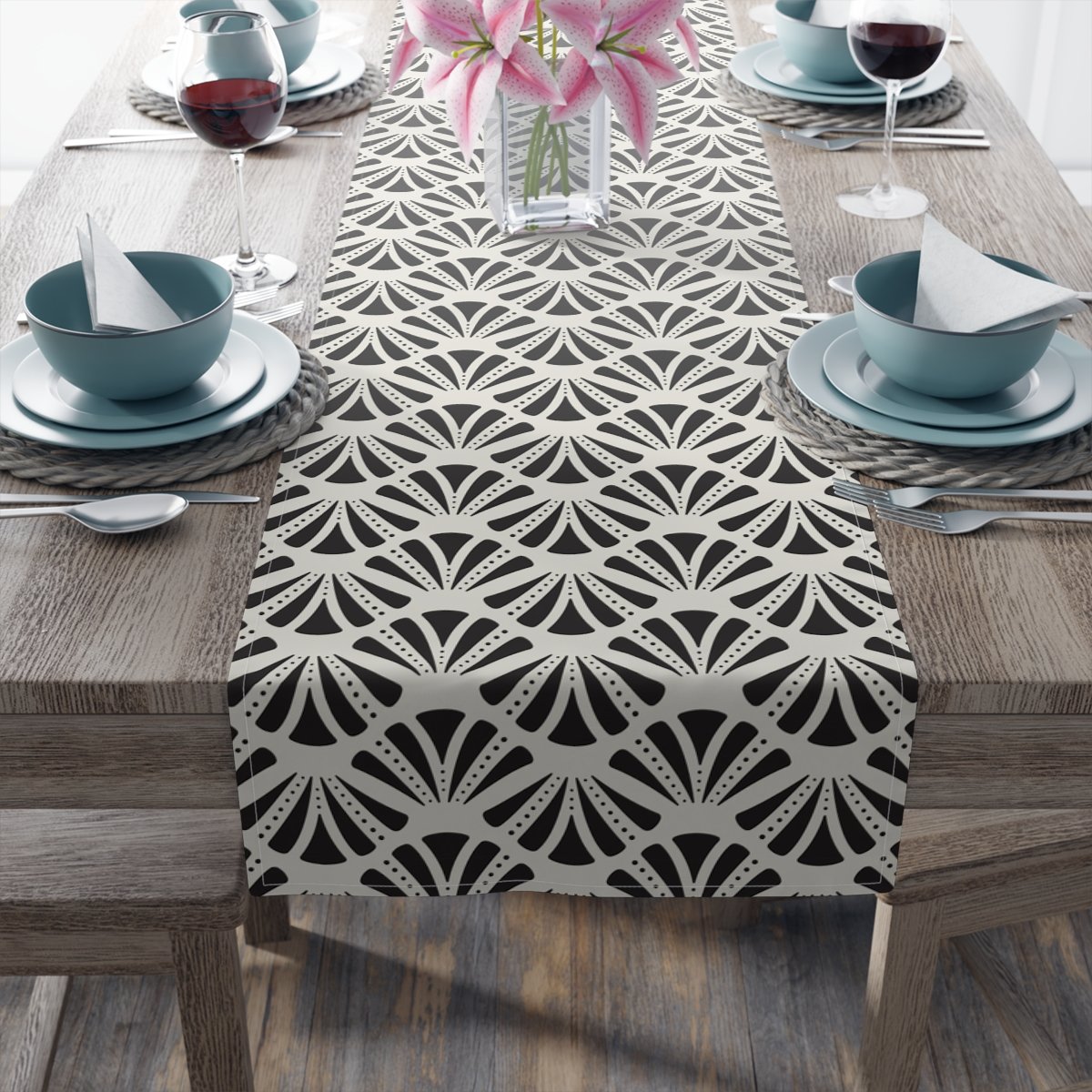 Seamless Art Deco Pattern in Black n White Dining Table Runners