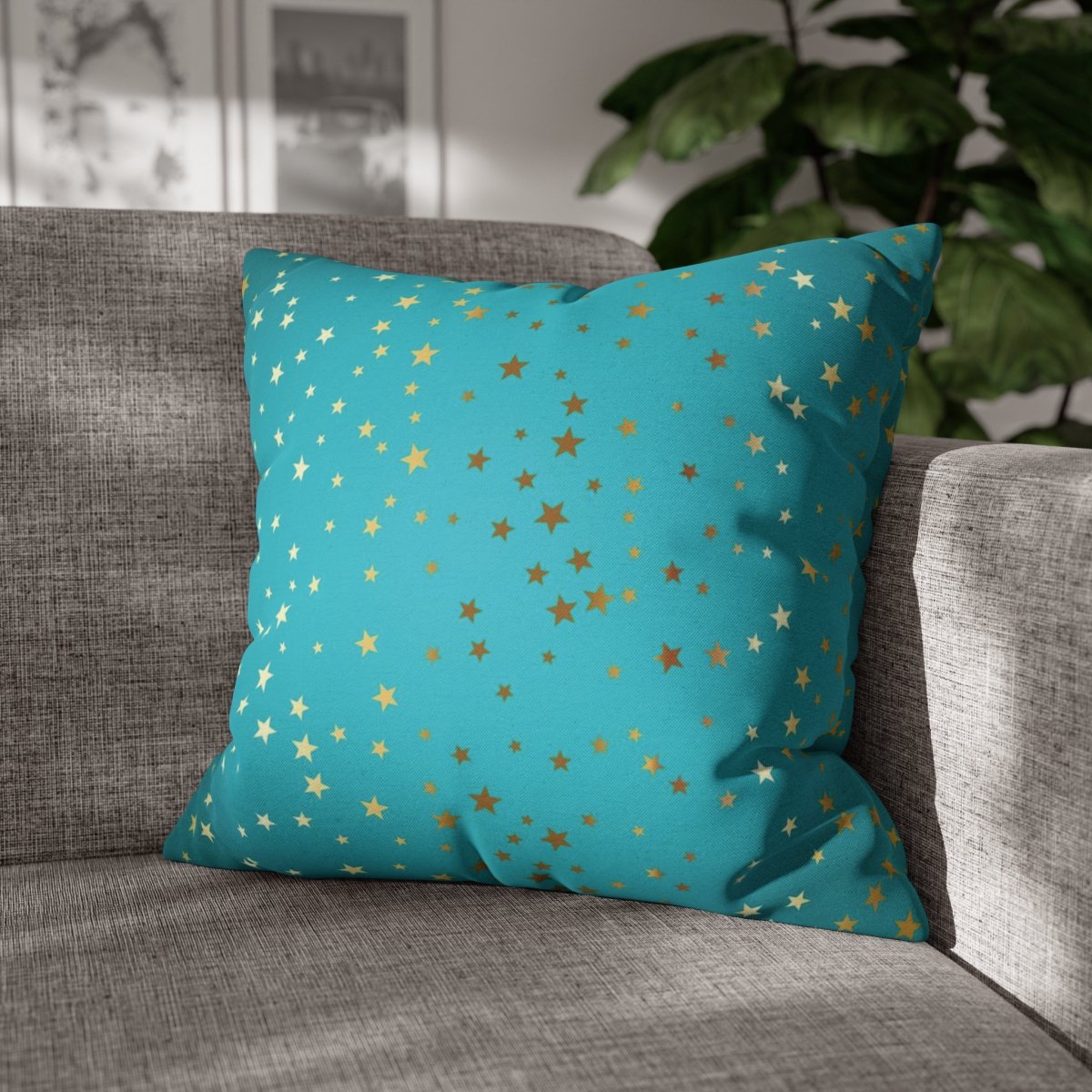 Upgrade your home décor with our Starry Pattern in Gold and Teal Toss Pillow Covers, and transform your sofa into a luxurious and inviting centerpiece. Experience the perfect blend of style and comfort with these eye-catching and functional accessories.