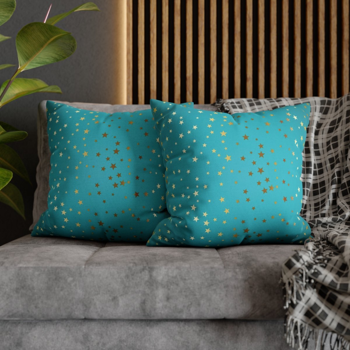 Starry Pattern in Gold and Teal Toss Pillow Covers