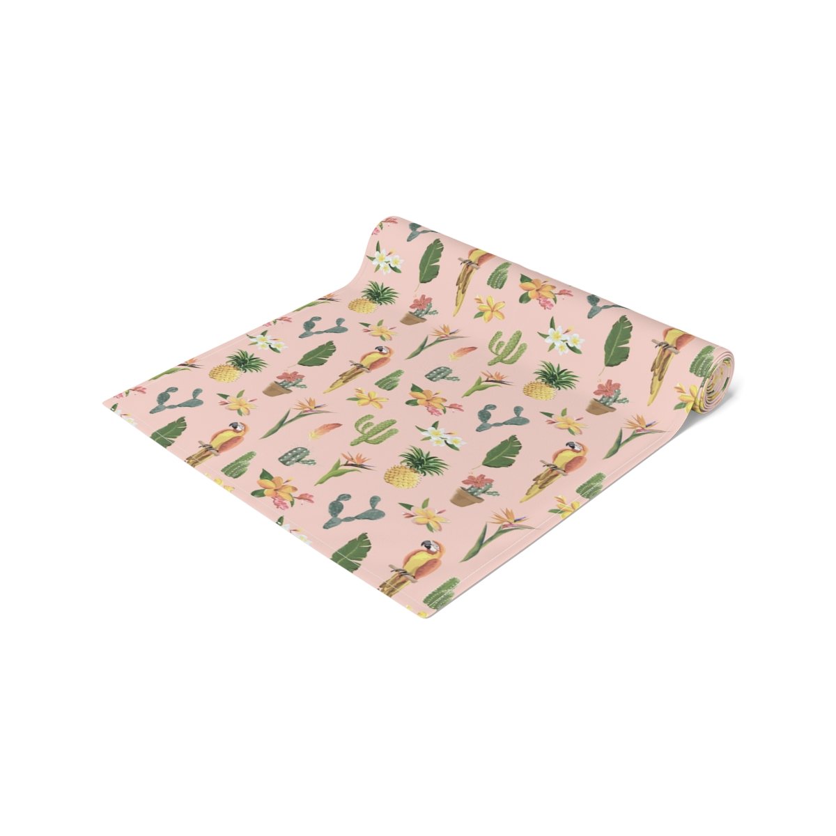Stylish Printed Pink Tropical Dining Table Runners for 4 or 6 Seater