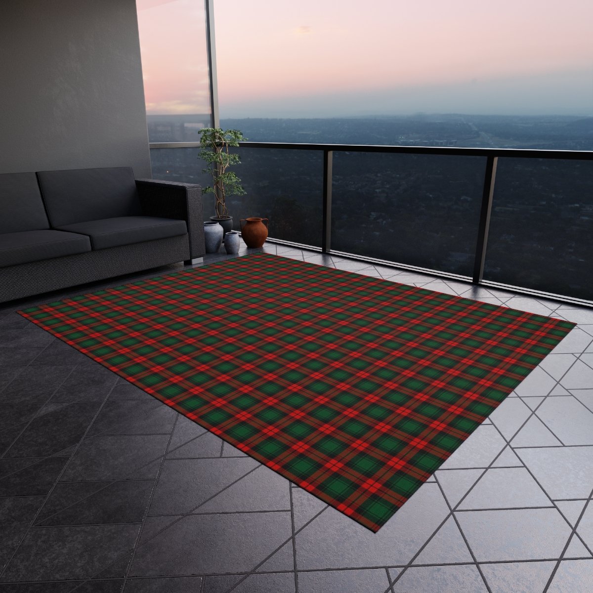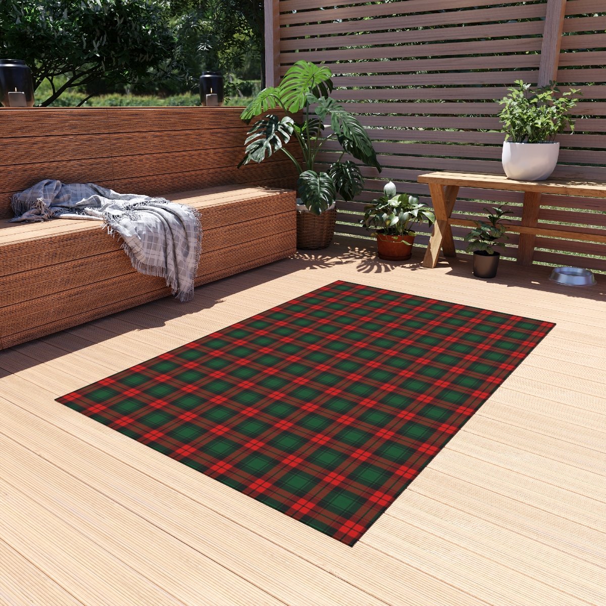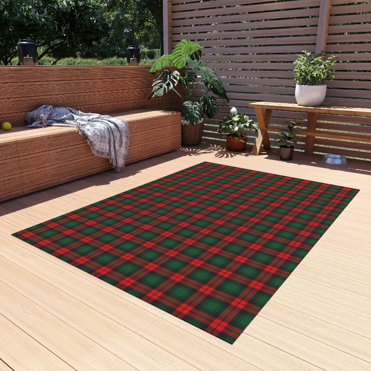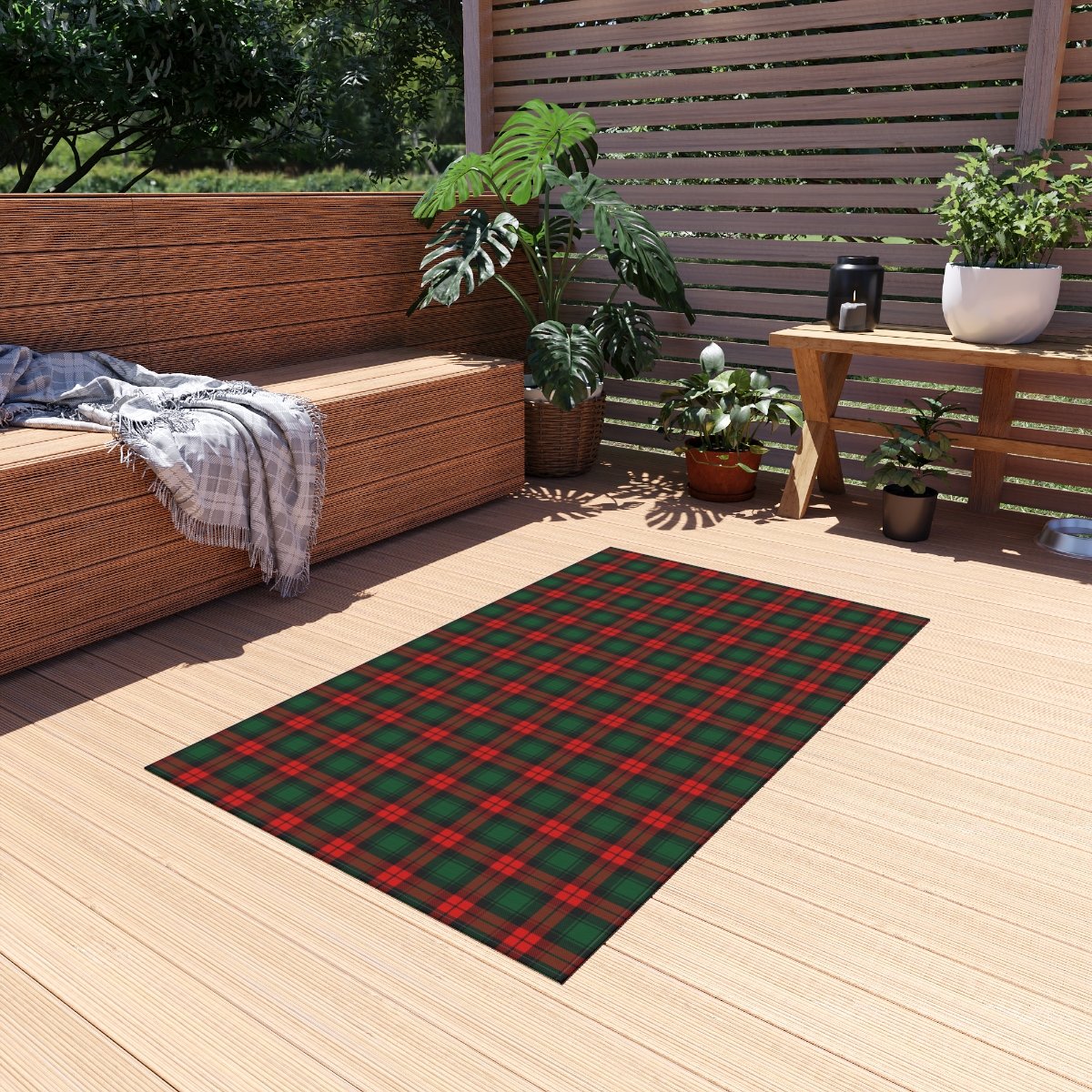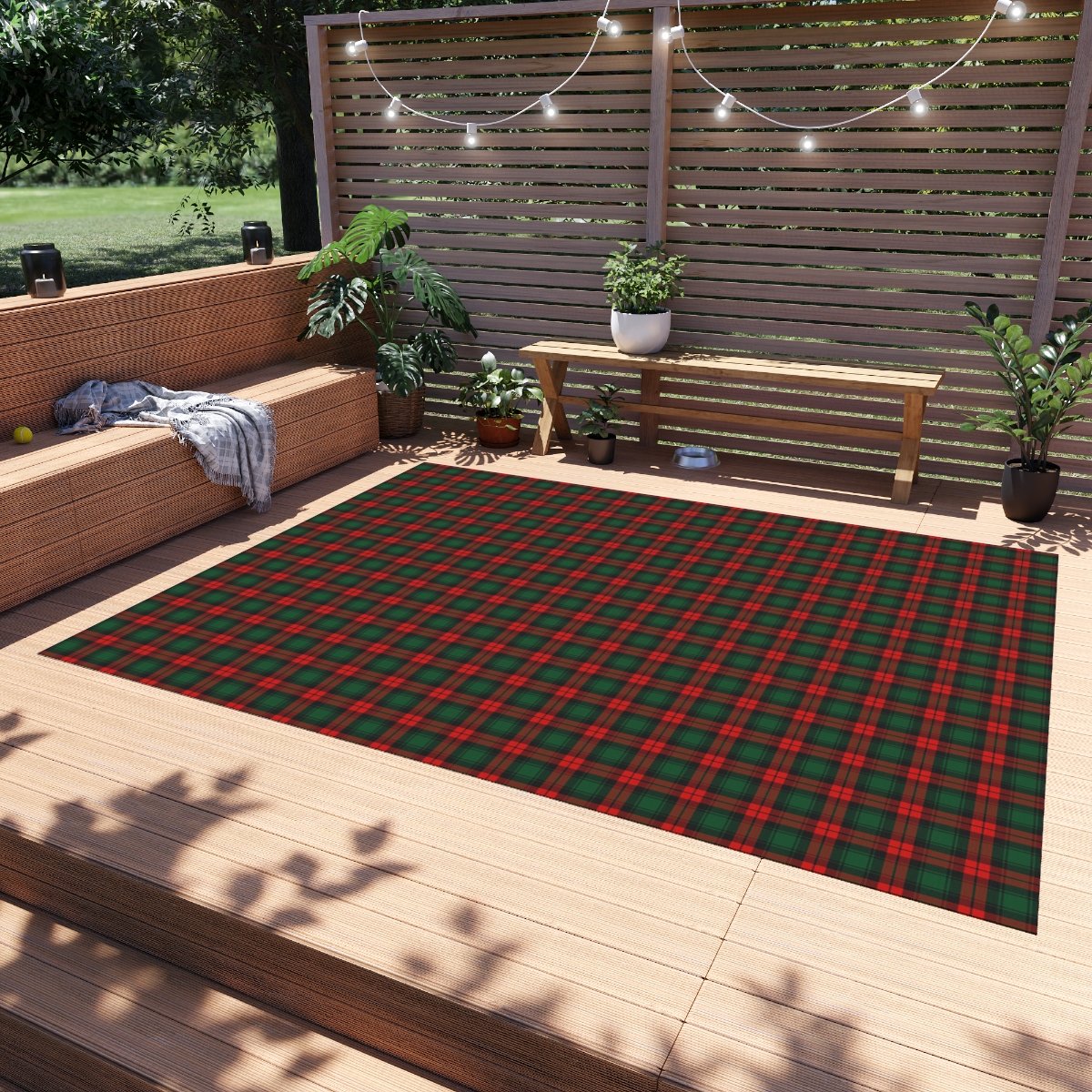 Stylish Red and Dark Green Tartan Plaid Christmas Outdoor Rugs