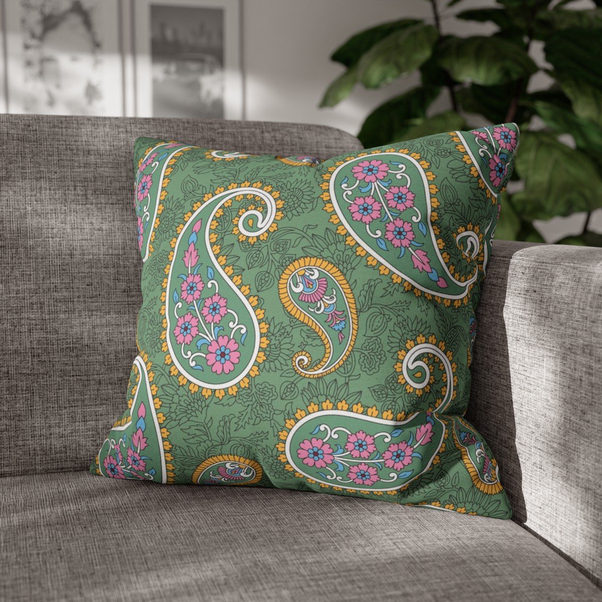 Upgrade your home décor with our Traditional Paisley Pattern on Green Throw Pillow Covers with zipper, and transform your sofa into a luxurious and inviting centerpiece. Experience the perfect blend of style and comfort with these eye-catching and functional accessories.