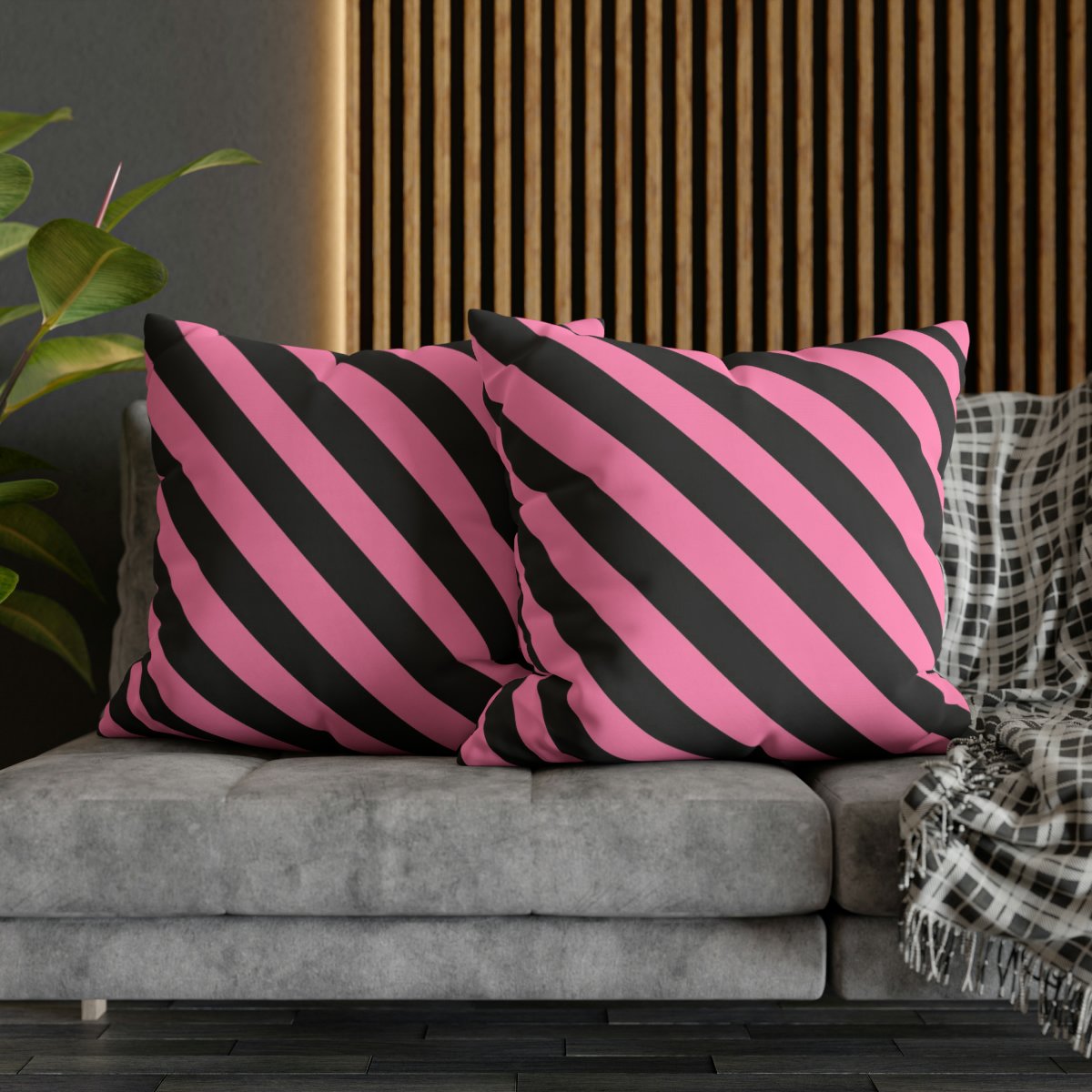 In summary, the diagonal striped pattern in Trendy Black and Pink Diagonal Striped Euro Shams are a must-have for anyone seeking a blend of elegance and style in their home decor. With their pink & black color, intricate striped pattern, double-sided print, 100% polyester canvas material, and concealed zipper, these pillow covers offer both visual appeal and practicality. Elevate the look of your pillows and create an atmosphere of sophistication with these exquisite euro bed pillow covers.