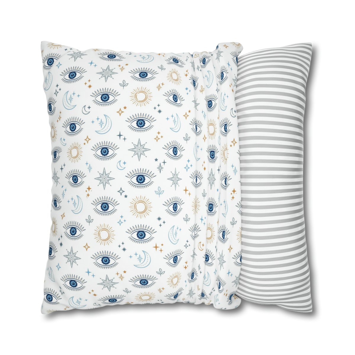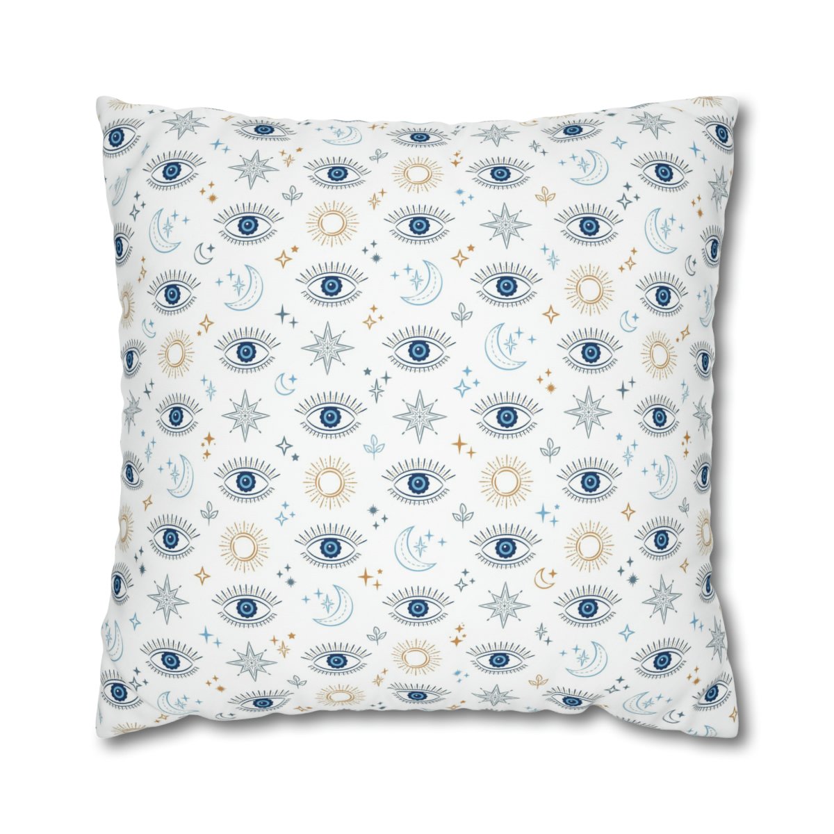 Whether you are looking to enhance the positive energy in your home or simply want to add a touch of charm to your space, these Trendy Blue n Golden Magical Eyes Design on White Euro Sham Pillow Covers are the perfect choice. Get ready to infuse your living space with style, protection, and a little bit of luck.