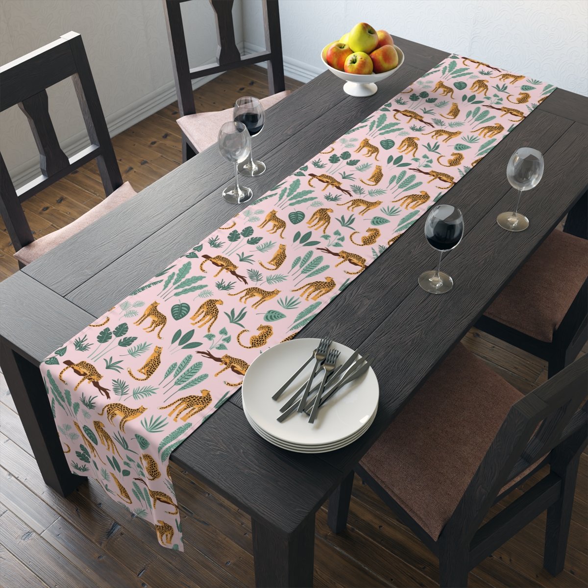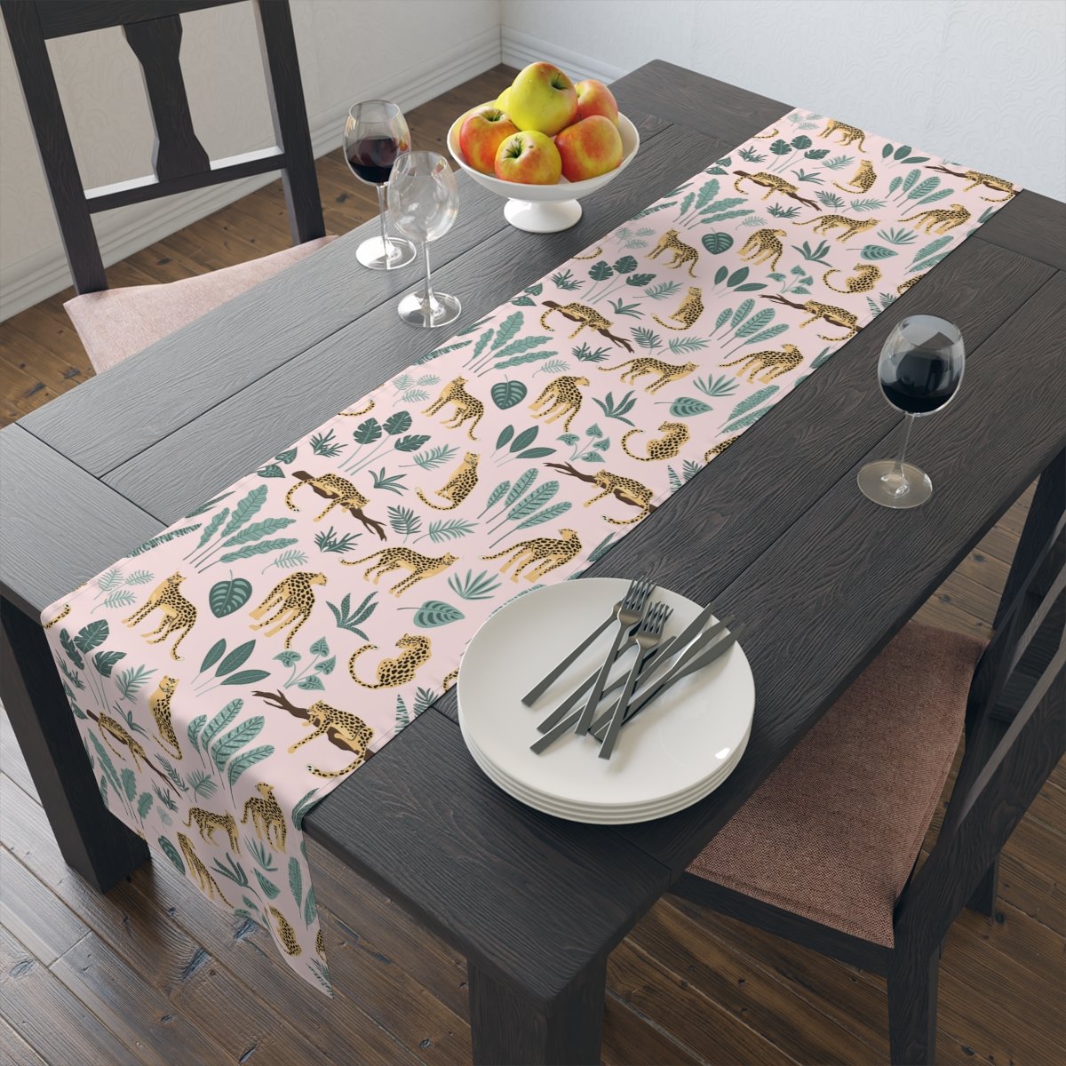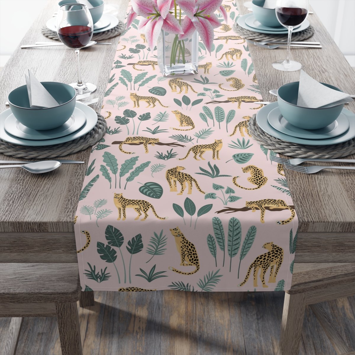 Trendy Leopard Jungle Print Light Pink Table Runners