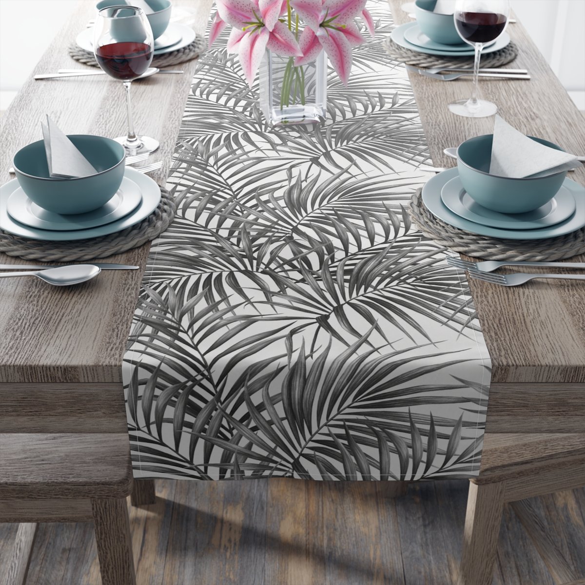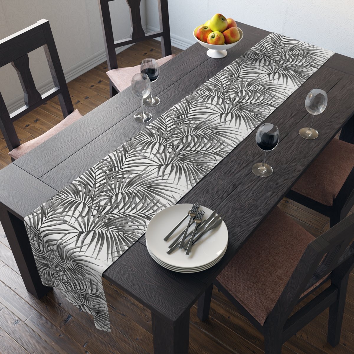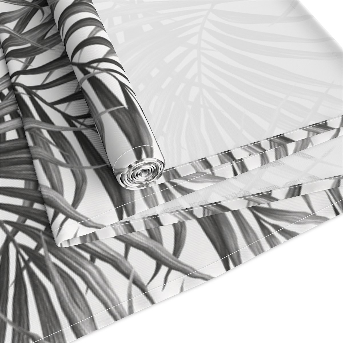 Trendy Summer Palm Leaves in Black n White Dining Table Runners for 4 or 6 Seater