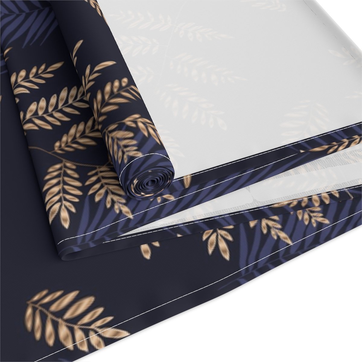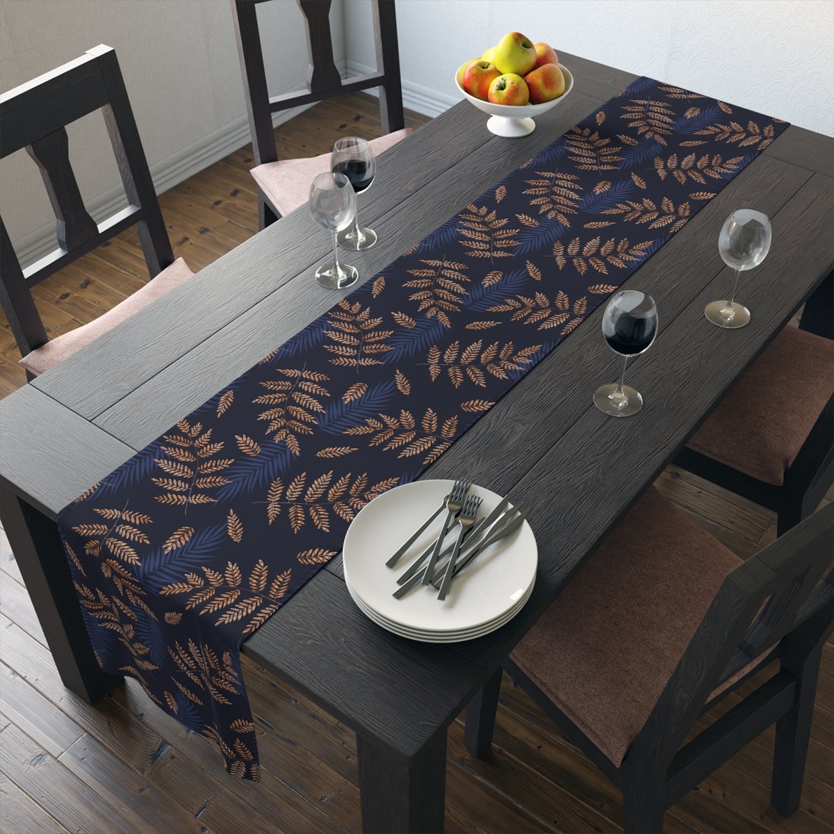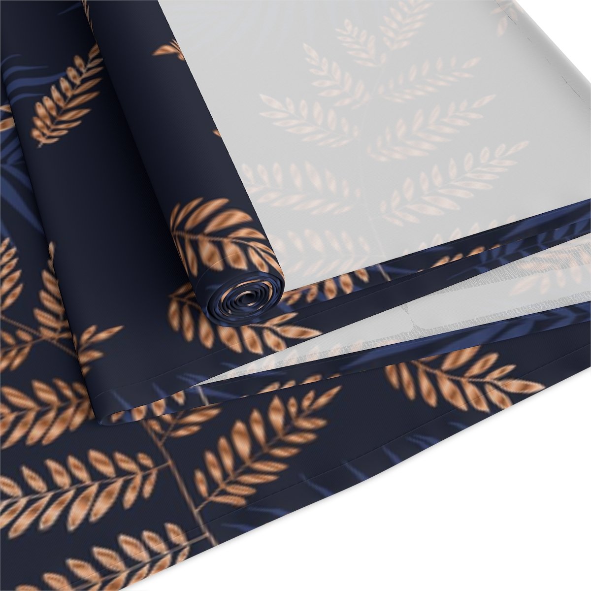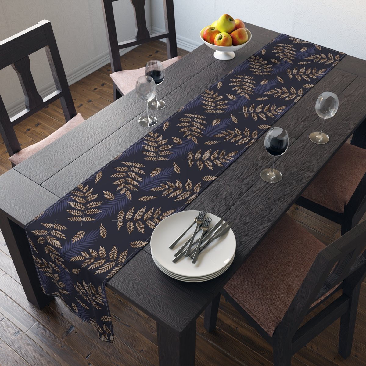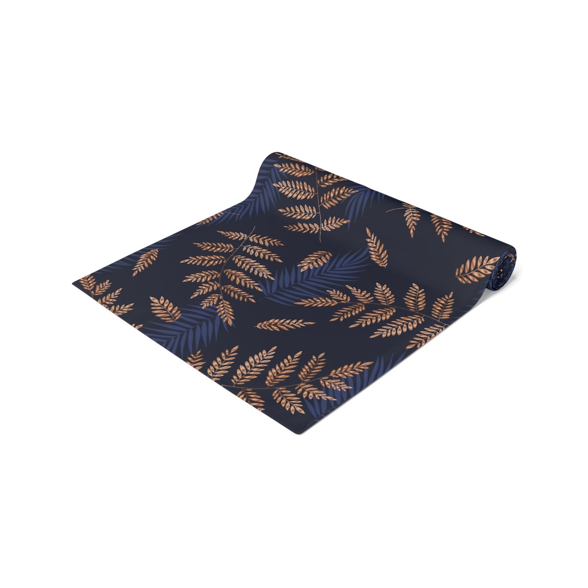 Tropical Fern Gold Pattern on Blue Dining Table Runners for 4 or 6 Seater