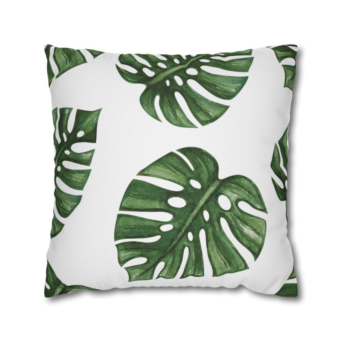Add a touch of paradise to your home decor with these Watercolor Tropical Monstera Leaf Print Throw Pillow Covers. Made from high-quality polyester and faux suede fabric, these pillow covers offer a smooth and soft texture for ultimate comfort. The stunning palm leaves pattern brings a tropical vibe to your living space, while the concealed zipper ensures a sleek and seamless look.
