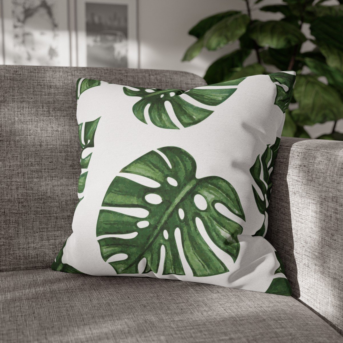 Perfectly sized at 14×14 inches to 20×20 inches , these pillow covers are compatible with standard throw pillows and are easy to insert and remove. Transform your home into a tropical oasis with these Watercolor Tropical Monstera Leaf Print Throw Pillow Covers.