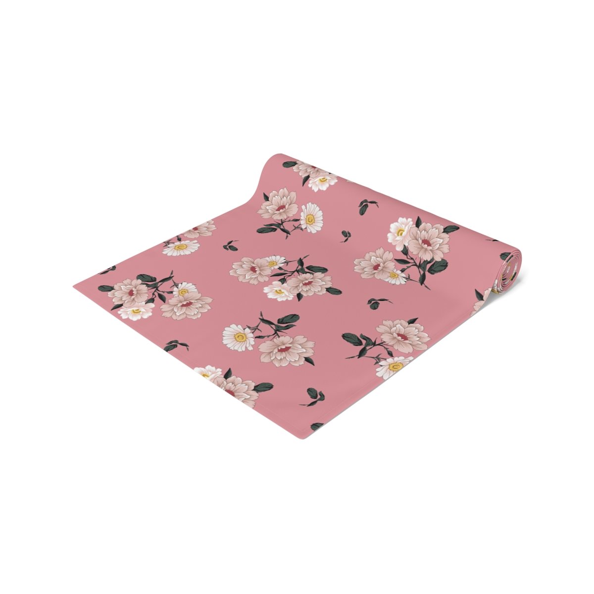 The floral background on pink adds a touch of glamour and sophistication to your table setting, making these table runners perfect for any special occasion during the holiday season. The design is inspired by elegant wrapping paper, adding a festive and joyful element to your decor.