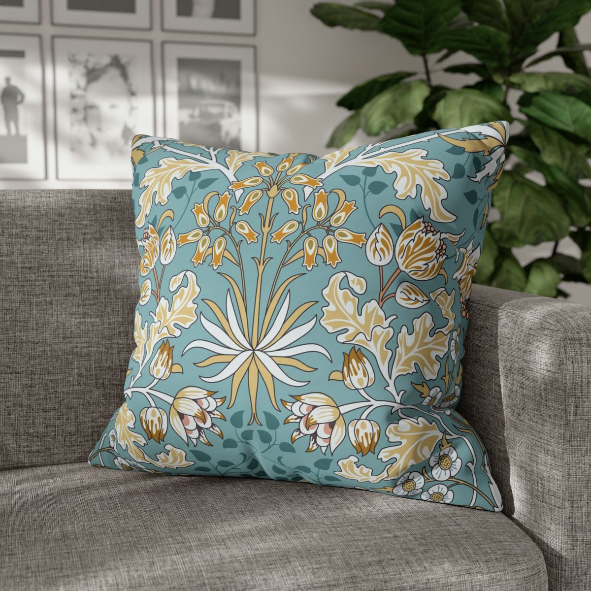These Euro Shams feature a captivating vintage flowers and foliage seamless pattern. The pattern showcases a delightful display of flowers and foliage on light blue background, creating a vibrant and visually appealing design. The intricate details and organic motifs pay homage to Morris’s love for nature and his timeless artistic vision.
