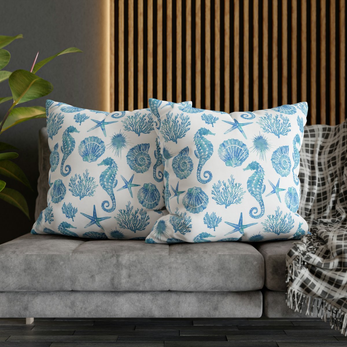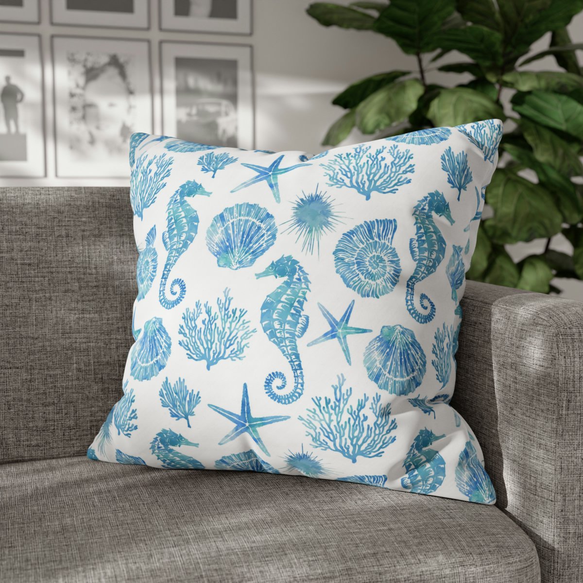 Featuring a captivating coral sea pattern on a vibrant white background, these Euro sham pillow covers effortlessly enhance the style and appeal of any room. The combination of the modern design and bold blue color choice creates a visually striking look that will instantly catch the eye.