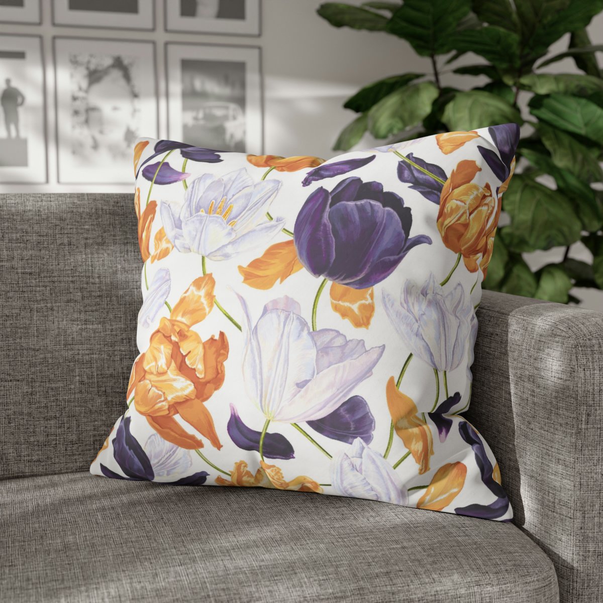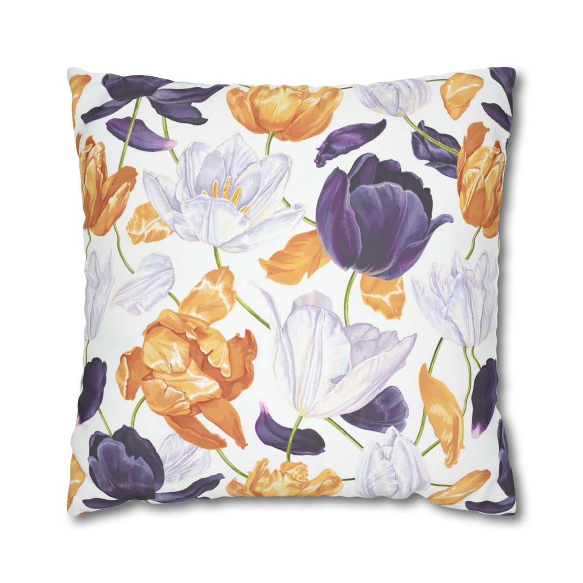 Whether you place them in your bedroom, living room, or even in a cozy reading corner, the Yellow, White, Dark purple Tulips Euro Pillow Shams will breathe new life into your home. The exquisite design and soothing palette will bring a sense of serenity and renewal, allowing you to relax and immerse yourself in the beauty of nature. Celebrate the arrival of spring with these enchanting pillow shams that bring the beauty of blooming tulips indoors.